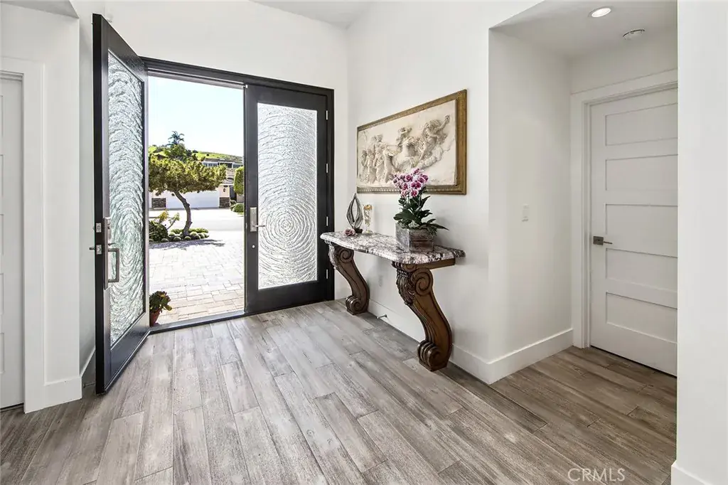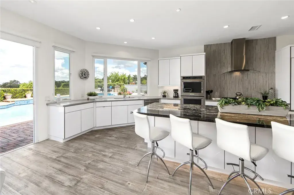 Welcome to an extraordinary custom single level modern masterpiece, perched in the coveted hills of Turtle Rock. This one-of-a-kind residence boasts gorgeous sunsets and unobstructed panoramic views, capturing the beauty of rolling hills and city lights, and even Disneyland fireworks. Radiating contemporary elegance, no detail has been overlooked in its impeccable craftsmanship designed for effortless easy-care and seamless indoor/outdoor living.This exceptionally private architectural gem was custom built in 2017, with nearly $800,000 invested at the time to elevate it to an unparalleled level of modern refinement. The moment you step inside, an awe-inspiring sense of openness greets you, as dramatic 16’ wide by 8’ high La Cantina doors dissolve the boundary between indoors and out. Additional strategically placed windows frame the stunning vistas, bathing the interiors in an abundance of natural light. At the heart of this home is an expansive great room, where soaring ceilings create an airy and inviting atmosphere. A luxurious family lounge features a sleek 75” Samsung TV, a striking contemporary fireplace, and a built-in entertaining bar complete with a wine refrigerator. The adjacent dining area is defined by a dazzling statement chandelier, setting the stage for unforgettable dinner parties against the backdrop of mesmerizing twilight views. The designer kitchen offers a stunning 14-foot-long waterfall-edge island is complemented by high-gloss white cabinetry and top-of-the-line KitchenAid appliances and sleek clean lines make this kitchen as beautiful as it is practical.The primary suite includes a private office/sitting area. The ensuite spa-inspired bathroom features floating vanities, designer lighting, and extensive use of Carrara marble-inspired finishes.A secondary en-suite bedroom continues the theme of refined modernity, with its own impeccable design and high-end finishes. Even the guest bath exudes elegance and a commitment to luxury. Revel in the resort-inspired backyard, where the expansive patio invite relaxation and entertainment alike and a sparkling pool and spa provide a serene oasis. Enjoy the seamless fusion of contemporary luxury with the great outdoors, state-of-the-art technology and awe-inspiring views. Award winning Turtle Rock Elementary & University High School are steps away. Exceptional nearby community facilities.