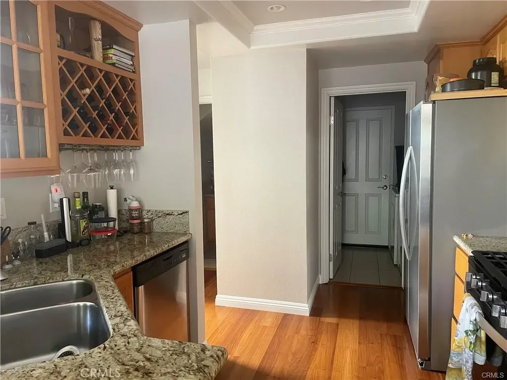 Beautiful townhome in the highly desirable Las Palmas community of Westpark. Light and bright open floor plan with vaulted ceilings, abundant natural light, and wood flooring throughout. Cozy fireplace in the living room with adjacent dining area and sliding doors leading to a spacious, low-maintenance hardscaped backyard.