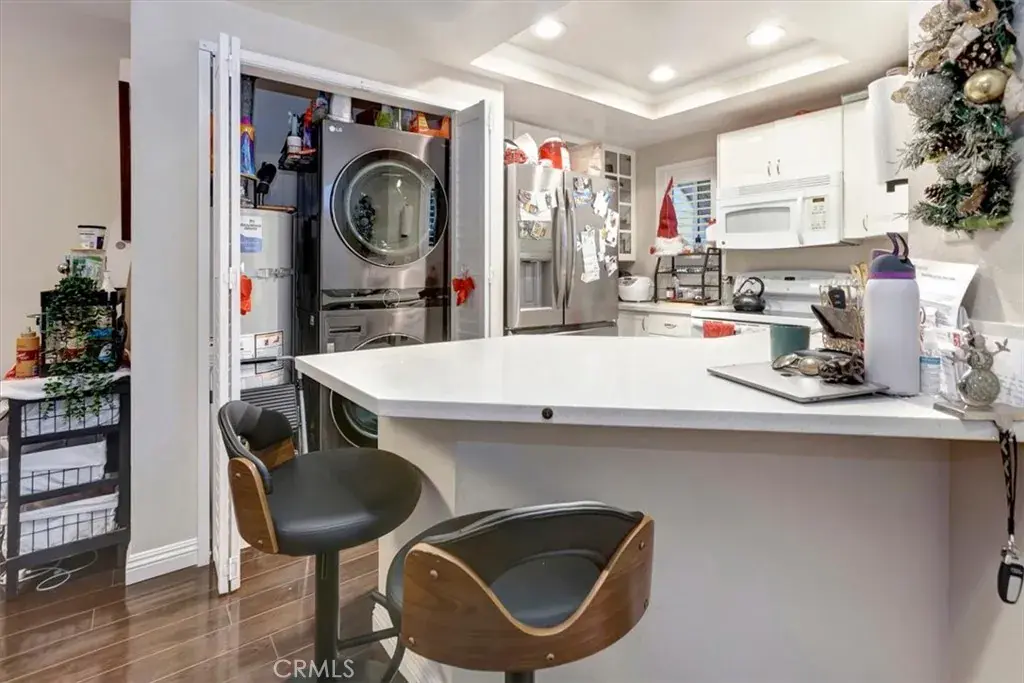 Fantastic 1B/1B PLUS LOFT condo with dramatic high ceilings and excellent natural lighting in the highly coveted Woodbridge community. Within the living room is a spiral staircase leading to a spacious loft that can be used as a home office, convenient spot for overnight guests, or relaxing retreat. The main living area has high vaulted ceilings, open floorplan, cozy fireplace, and a spacious outdoor deck. The kitchen has been upgraded with quartz countertops and the interior laundry is conveniently located just off the kitchen. Existing washer & dryer and refrigerator are included. A very quiet end-unit location with no one above or below includes a 1-car detached garage with storage space. Additional parking is available via a permit through the HOA. Within the Woodbridge Village HOA you can walk to two beautiful lakes complete with docks and beach lagoons, as well as gain access to 23 tennis courts, pickle ball courts, 20 separate pools/spas, biking and walking trails, sand volleyball courts, and countless community parks. Centrally located within the Loop, you are conveniently located near restaurants, shopping centers, and you have access to the nationally recognized Irvine Unified School District. With low HOA dues and no Mello-Roos taxes, this is your opportunity to make your next home in the Irvine community of Woodbridge!