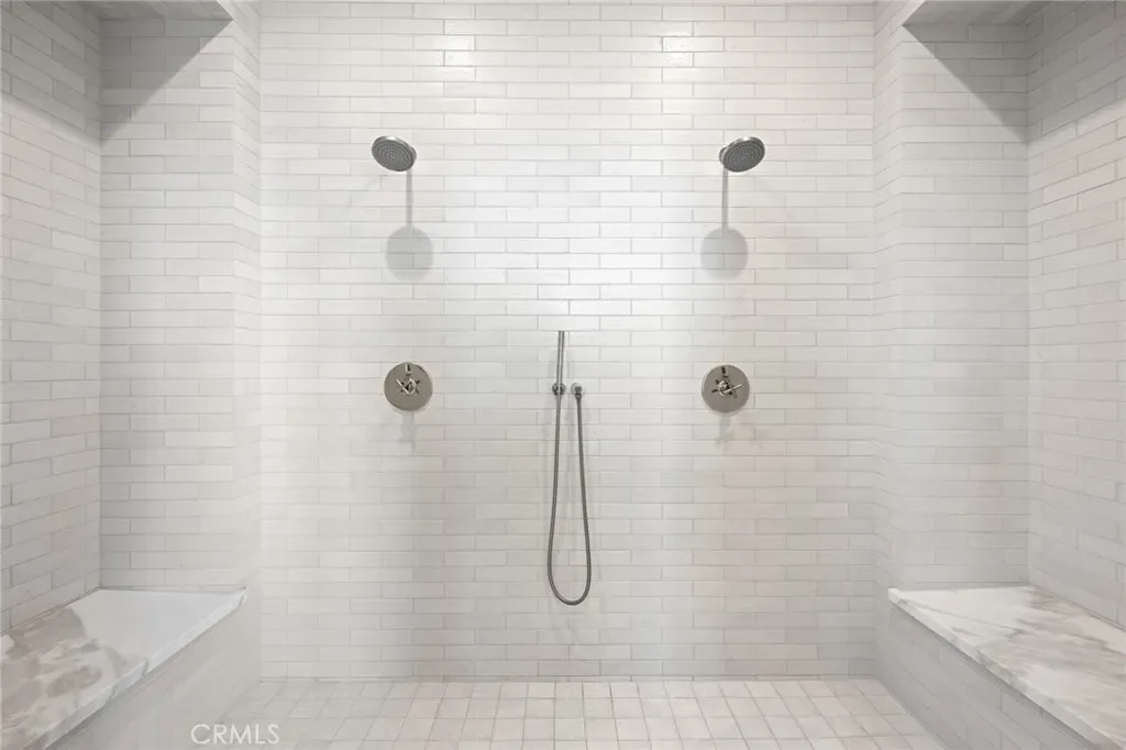 The primary suite occupies its own expansive private wing on the second level. A spa-inspired bath anchors the retreat, complemented by dual walk-in closets – one currently configured as a private office.
