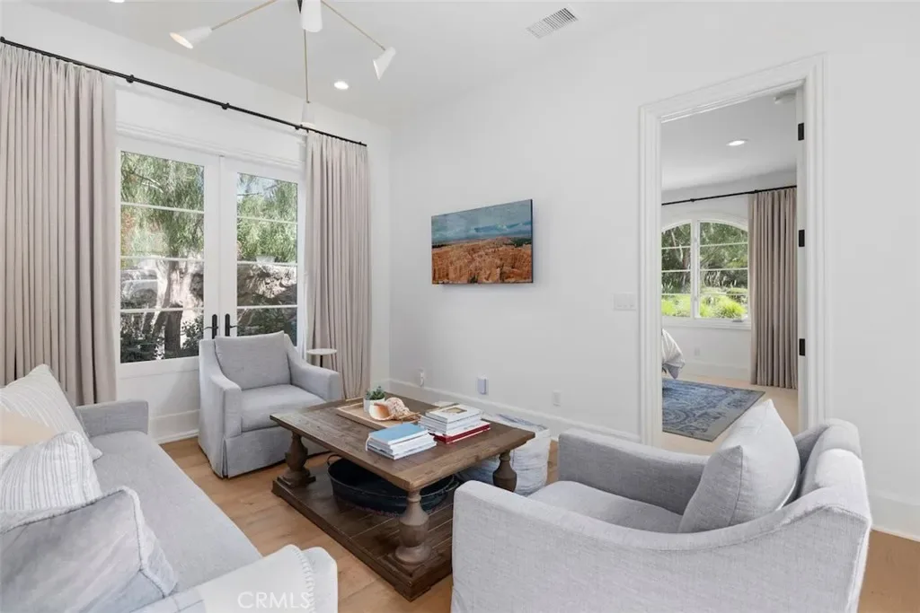 The chef’s kitchen is a true centerpiece, appointed with top-tier appliances, bespoke cabinetry, and intentional design for both function and beauty. Adjacent living spaces provide seamless versatility: formal living and dining rooms open to a charming central courtyard through French doors; the family room and sunlit morning room frame the kitchen for effortless gatherings; and a custom-finished media lounge serves as a dramatic showpiece for elevated entertaining.