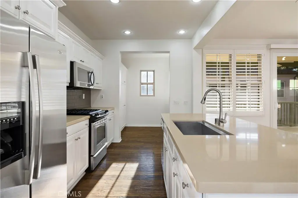 Beautifully appointed residence in the highly desirable Woodbury East community of Irvine. This rare 2- bedroom + office + 2.5-bathroom + 2-car garage home features a coveted single-level layout that seamlessly combines the main living areas and bedrooms on the same floor. Upon entry, you are greeted by soaring high ceilings and a versatile flex space, perfect for a home office or sitting area. The light-filled interior has been refreshed with brand-new paint and brand-new carpet, complemented by elegant hardwood flooring. Spacious great room that connects the living, dining and kitchen. The gourmet kitchen is a chef’s delight, boasting a generous quartz island, a pantry area that can be used as an office, and a premium stainless steel appliance package featuring a gas stove, fridge, dishwasher (brand new), hood, and faucet (brand new). LED Recessed and new light fixtures in both bedrooms. The luxurious remodeled master suite serves as a private retreat, offering dual sinks, granite countertops, a full-width mirror, and a newly remodeled shower with a sparkling new glass door. Additional highlights include custom wood shutters, brand-new washer and dryer, and ample storage throughout. The attached 2-car garage offers direct access and features a brand-new epoxy floor and storage racks. Residents enjoy world-class Woodbury East HOA facilities and a prime location near the Jeffrey Open Space Trail, Trader Joe’s, Starbucks, and premier dining. This clean, smoke-free property is in turnkey condition and ready for immediate move-in!