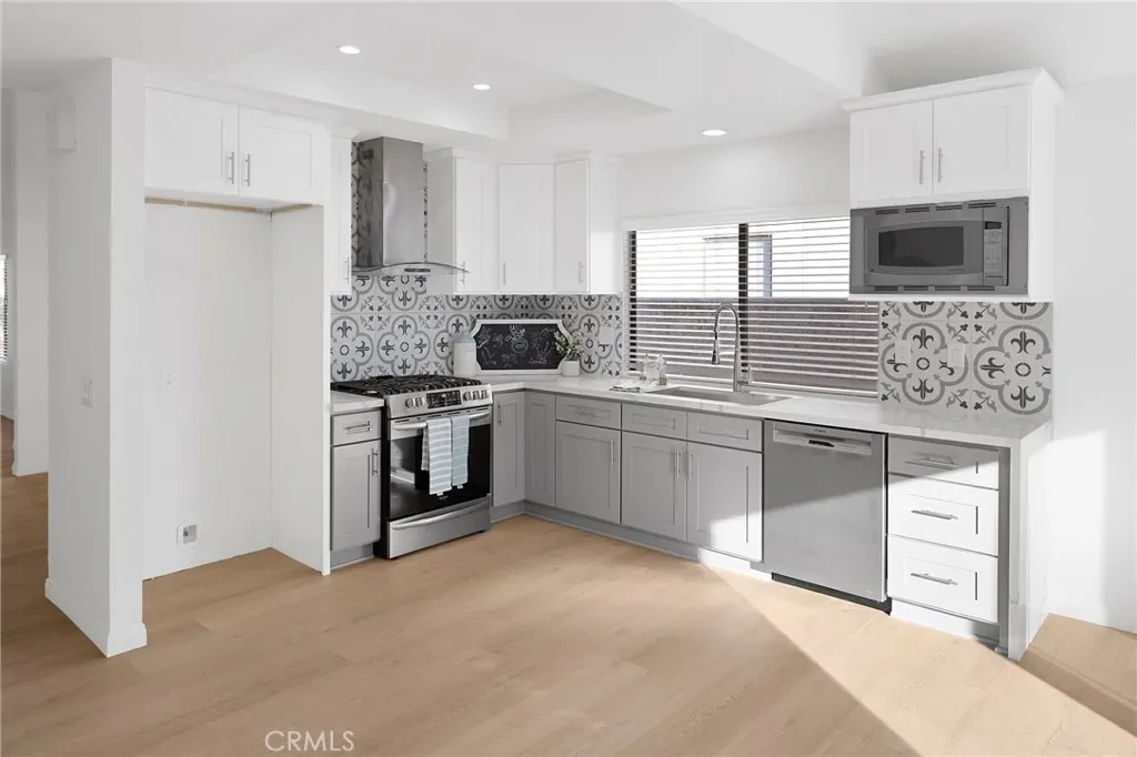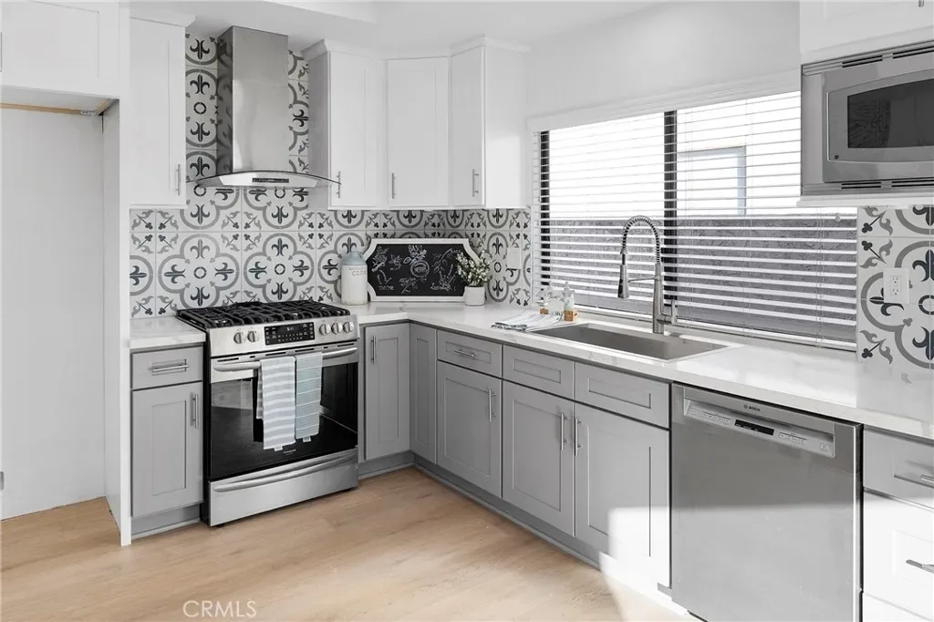 Newly Remodeled Single Level home in Northwood, Irvine! Great location on a quiet inside street near parks. Entry opens to the living room with a step-down Conversation Pit and Fireplace. Gourmet kitchen with stainless steel dishwasher, sink, gas range, hood, new cabinets and quartz counters. Kitchen is open to the family room that overlooks the backyard. New designer laminate flooring throughout. Large master suite with remodeled bathroom. New vanities, fixtures and a luxurious walk in shower. Two secondary bedrooms with large closets. Hall bathroom is completely remodeled with a new vanity, glass shower door, toilet and fixtures. Indoor laundry area. Nicely landscaped front and back yard. Attend Award Winning Irvine Unified Schools: Northwood Elementary, Sierra Vista Middle & Northwood High. Close to the 5 freeway, Irvine Spectrum, Irvine Valley College, UCI, Kaiser and HOAG Medical Facilities.