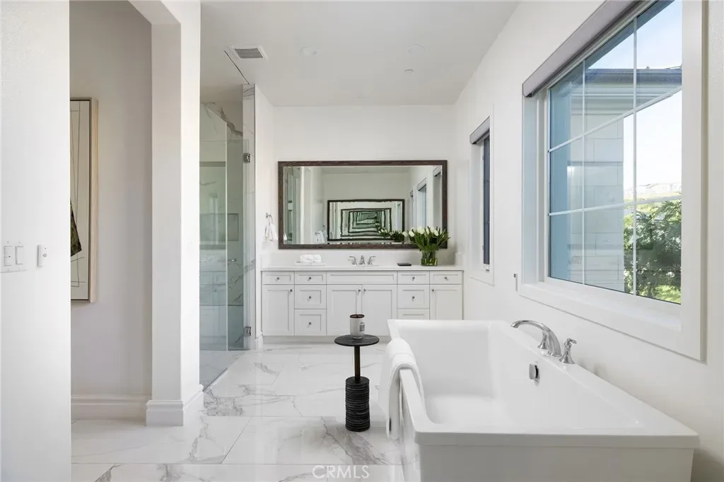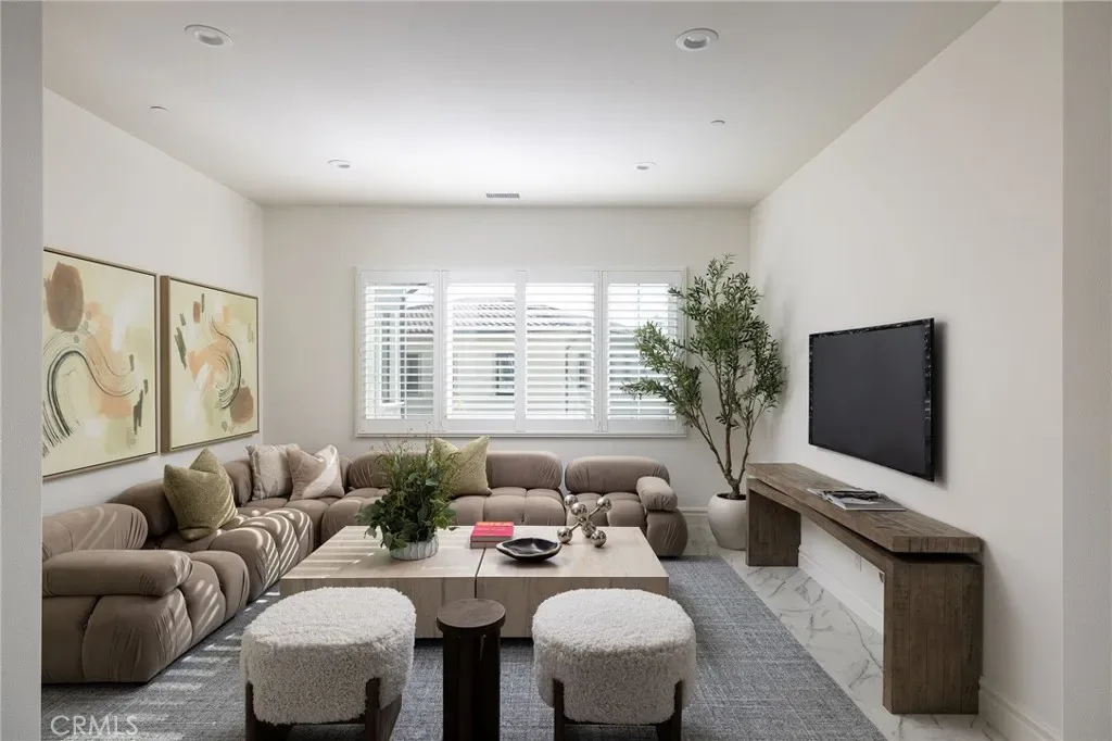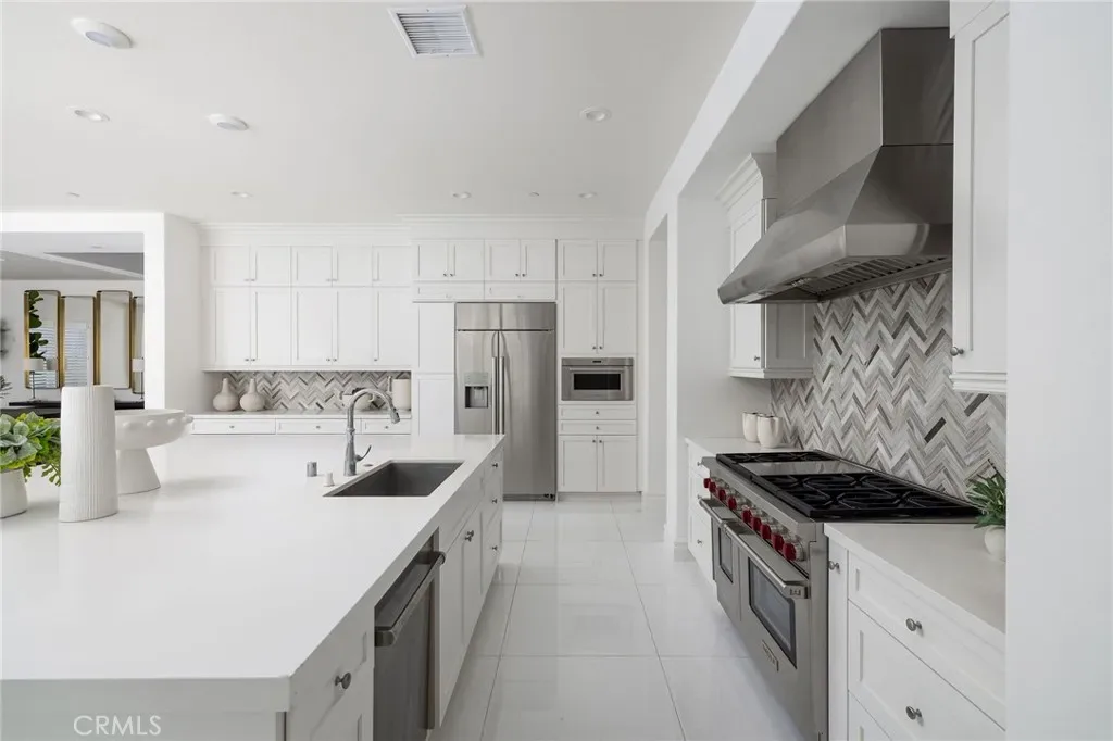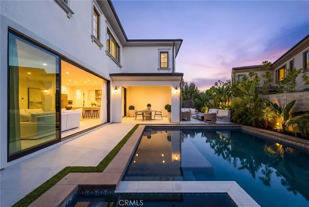 Situated within the prestigious 24-hour guard-gated community of Altair, this Toll Brothers Helios Italianate residence offers 4413 square feet of thoughtfully designed living, complemented by extensive enhancements throughout. A double-height foyer creates a striking introduction to the home. Just off the entry, a formal living room framed by arched windows offers a refined space well suited for an office, library, or sitting room. Beyond the foyer, the layout opens to the dining area, expansive family room, and gourmet kitchen, where the home’s open-concept design is tailored for both everyday living and elevated entertaining. The gourmet kitchen is appointed with a large center island, a 6-burner Wolf range, abundant cabinetry, and generous prep space. Recessed lighting and expansive windows bring in natural light, while oversized pocket doors extend the interior living spaces effortlessly to the outdoors. Designed as a true extension of the home, the backyard features thoughtfully executed improvements totaling more than $700,000—creating a private resort-like setting. Complete with a pool and spa, covered outdoor living area, multiple gathering spaces, and curated landscaping, the outdoor environment is both functional and visually striking. The home features five en-suite bedrooms, including a desirable main-level suite. Upstairs, the primary suite offers a spacious retreat with a sitting area and a well-appointed bath featuring a freestanding soaking tub and separate walk-in shower. Secondary bedrooms each include en-suite baths, with one offering a private balcony, while a second-level loft provides additional flexible living space. Additional features include built-in audio in the living room, an upper-level laundry room with cabinetry and sink, paid-off solar, and an upgraded driveway. Residents of Altair enjoy access to resort-style amenities including pools and spas, clubhouse, tennis and multi-sport courts, parks, and scenic walking trails, all within a secure, guard-gated setting. Ideally located near premier shopping, dining, and major transportation routes, and within the Irvine Unified School District.