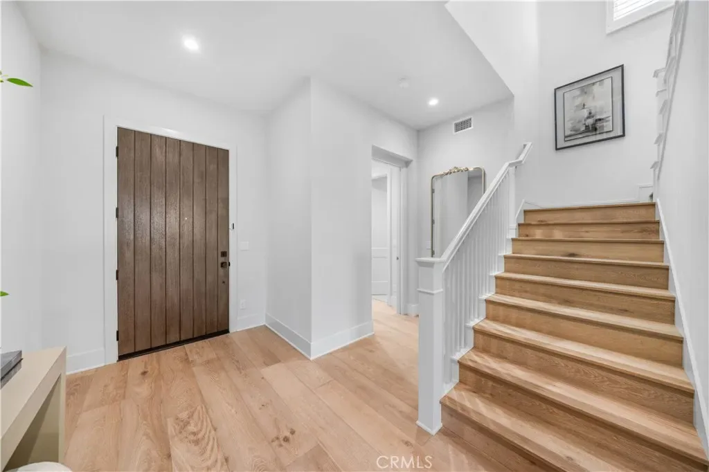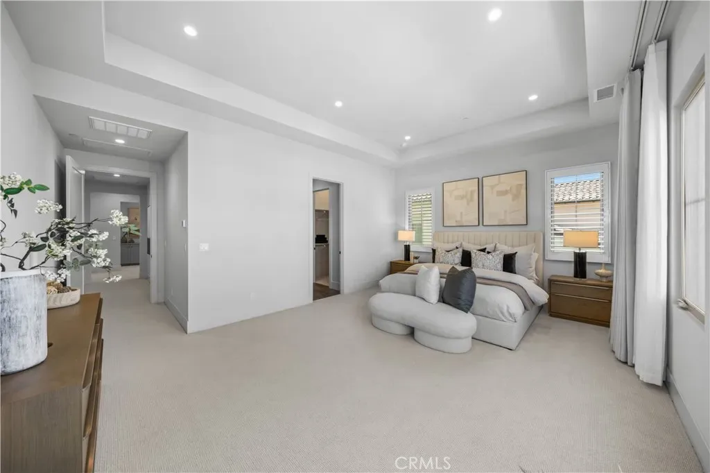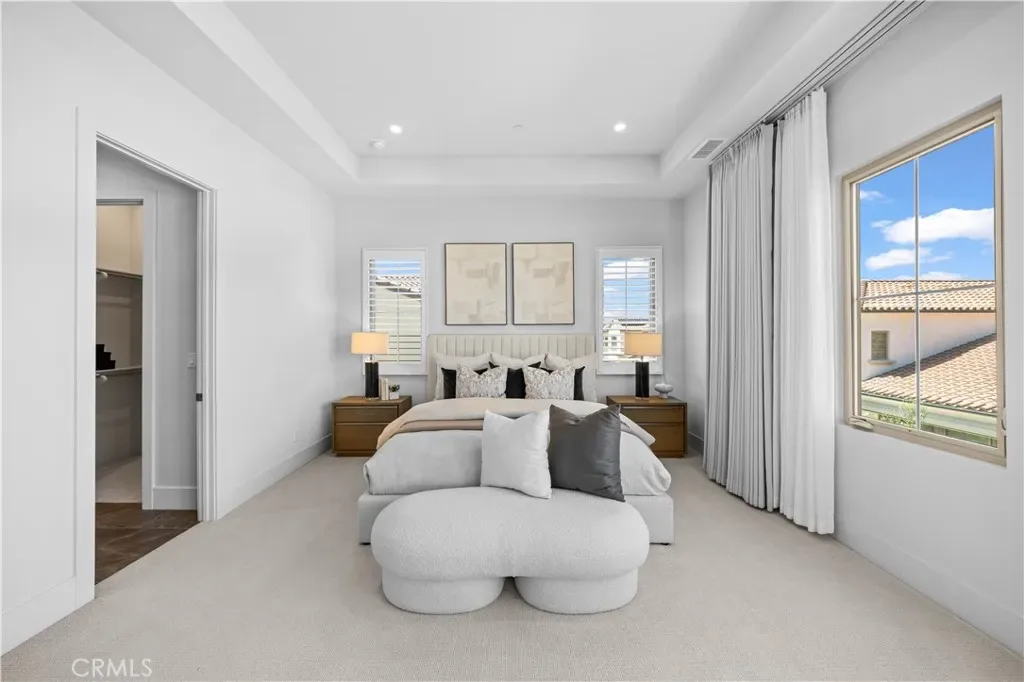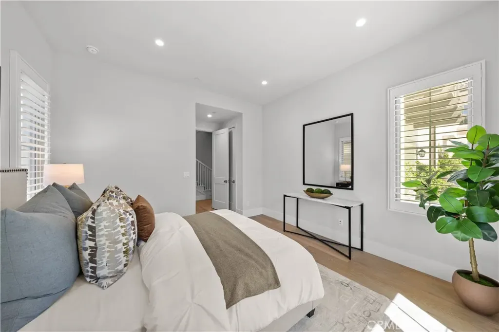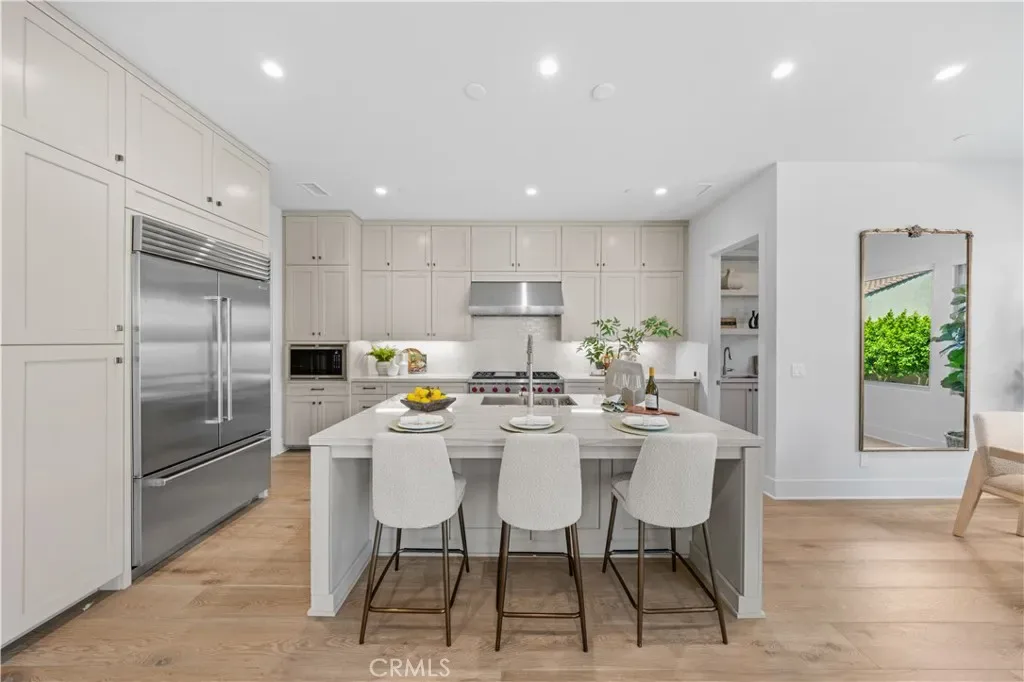Nestled on a single loaded street within the prestigious gated enclave of The Groves at Orchard Hills, this newer home offers an exceptional blend of privacy, luxury and functionality. Appointed with $300,000 in designer upgrades, this residence features 4 bedrooms, 4.5 baths, with 3,361 sqft living space on a 5,130 sqft lot, presenting avocado orchard view surrounded by nature. Walking through the front door, you’ll pass by the downstairs bedroom and full bath with upgraded shower wall, flooring and floating mirror. Louvre Collection Aged French Oak hardwood throughout the first floor. Spacious living room with high ceiling and cozy fireplace, sliding door to a private and low maintenance backyard with trees, flowers and artificial grass. Highly upgraded gourmet kitchen with a large island, designer color cabinets, quartz countertop with beautiful movement, and selected backsplash. Top-of-the-line appliances like Sub Zero 42” French door built-in refrigerator, Wolf 48” Stainless steel 6 burner gas stove with griddle, double oven, microwave, single basin sink, and luxury faucet. Prep kitchen with Wolf stove, sink, custom shelf and glass French door to the yard, better than the model! Dining room with picture window. Upstairs you will find an enclosed loft, perfect for a library/den/family room. Expansive primary bedroom, bathroom with double sinks, free-standing tub, shower room with wall-to-wall tiles, two walk-in closets and storage cabinets. Next, you’ll encounter 2 en-suite guest bedrooms with amazing avocado orchard views, offering relaxation and privacy. One of the guest rooms has a private balcony. The large laundry room is designed to feature a deep sink and ample cabinet storage space. Attached two-car garage with epoxy flooring. Paid off solar. Close to award-winning Tustin schools. Resort-style community amenities include swimming pools, club house, tot lot, barbecue and picnic table, tennis court, basketball court, etc. This house is a must see!