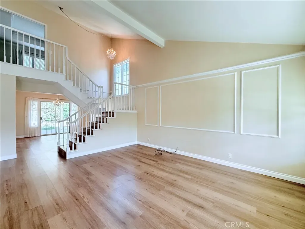 Located in the highly desirable Northwood community of Irvine, this beautifully upgraded single-family home sits on a quiet cul-de-sac just steps from the neighborhood park. This unfurnished residence offers a spacious and functional layout with over 2,100 sq ft of living space, featuring a dramatic high-ceiling living room filled with natural light, a separate family room with a built-in wall unit, and elegant French doors that open to the backyard. The remodeled kitchen showcases white cabinetry, granite countertops, and quality appliances, with ample storage and workspace. The home features four bedrooms, including one bedroom and full bathroom on the main floor—perfect for guests, office, or multi-generational living—and three bedrooms upstairs, including a spacious primary suite. Upgrades throughout include flooring, custom paint, and window coverings. The beautifully landscaped backyard offers a covered patio and mature fruit trees, creating a great space for outdoor enjoyment. Conveniently located near parks, top-rated schools, shopping, and easy access to I-5 freeway. A rare opportunity to lease a well-maintained home in one of Irvine’s most sought-after neighborhoods.