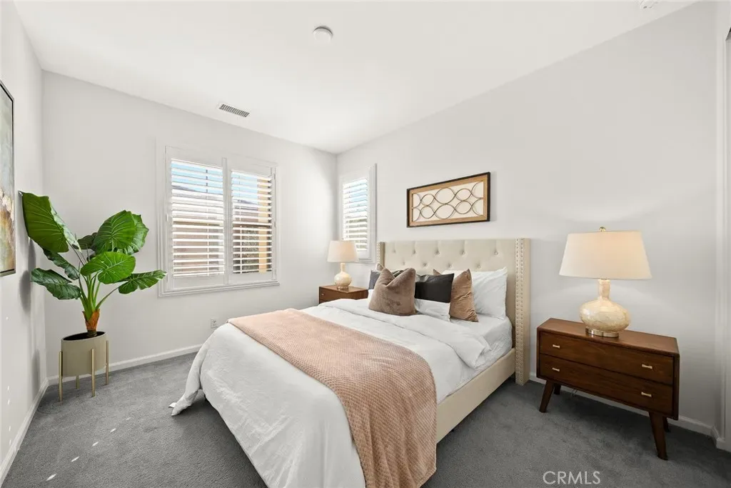A RARE FIND and MUST SEE 3-bedroom DETACHED home in the highly desired community of EASTWOOD. This gorgeous 1,902 sqft property sits on a PREMIUM CORNER LOT with no neighbor on the side, featuring 3 bedrooms and 2.5 bathroom PLUS tech space. The open floor plan on the 1st floor features bright and spacious living & dining area and a gourmet kitchen with modern white cabinets, stainless steel appliances, upgraded back splash throughout and quartz counter top. The oversized and professionally designed backyard is definitely an entertainer’s favorite and a perfect place for kids, with covered California room and low-maintenance lush landscape around. In addition to 3 beautiful bedrooms on the second floor, the tech space upstairs can be easily converted to a small office or a play corner, expanding the living space to the next level. Enjoy a welcoming and social village lifestyle in EASTWOOD with Resort-Style Recreation to Swim, Play, Picnic and walk distance to Eastwood Elementary School. Furniture not included, display only.