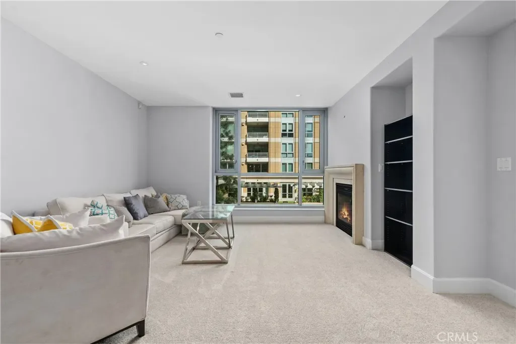 Experience elevated living in this spacious 1,349 square foot corner unit condominium located in the heart of the Irvine Financial District. The home features an open concept layout with a beautifully appointed kitchen including stainless steel appliances, Italian wood cabinetry, and a large center island perfect for everyday living. The expansive living room is highlighted by a cozy fireplace and an additional half bath for convenience. The residence offers a generous primary bedroom complete with an en suite bathroom and walk-in closet. A versatile den functions as a home office or guest room and is equipped to accommodate a fold out Murphy bed. One of the standout features of this property is the 24 hour concierge service which offers assistance with package deliveries and guest access. Residents enjoy access to luxury amenities at The Plaza including two resort style swimming pools and spa, a fitness center, billiards room, club room, catering kitchen, and conference room. This property is ideally located just minutes from Fashion Island, Newport Beach, UCI, John Wayne Airport, and local retail and dining options. This exceptional condominium offers a blend of luxury and convenience in a premier location.