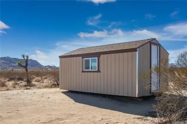Panoramic mountain views and natural desert landscape. Close to everything fun that the high desert offers. Your off-grid base camp is minutes from Pappy and Harriets, the Red Dog Saloon, Joshua Tree Coffee Company and the Joshua Tree Saloon for live music and tasty BBQ!! Equal distance to scenic Landers and Joshua Tree National Park. Moon bathe on the wood deck or enjoy the songs of the coyotes from your tiny cabin! Call your favorite realtor for an appointment today! APN 059937206.