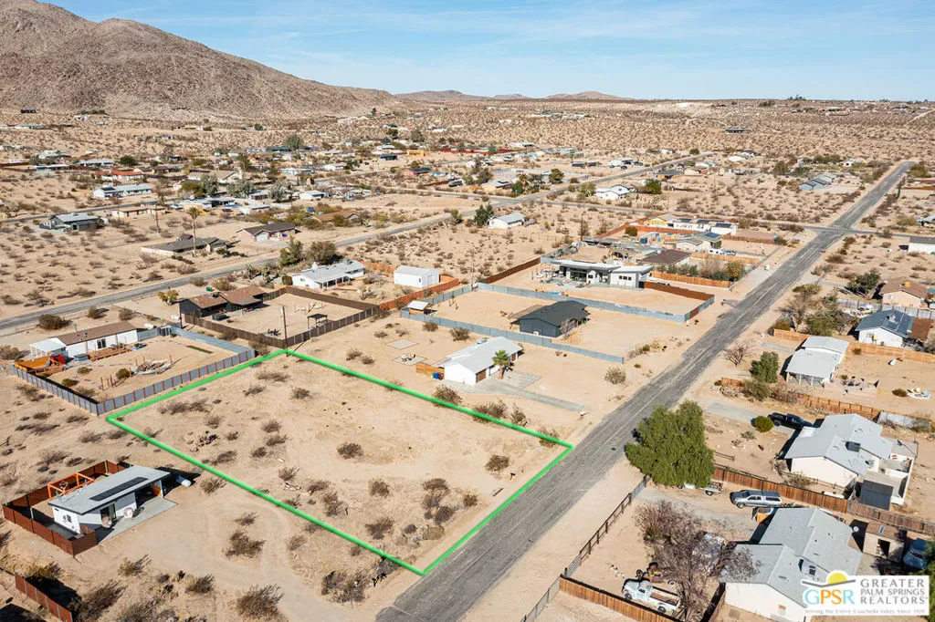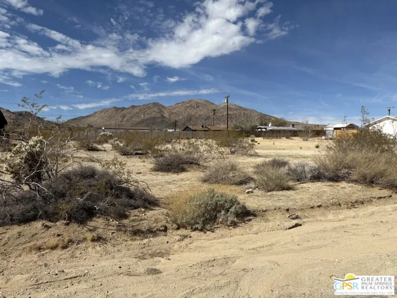Imagine waking up to the serene desert air, enjoying the silence of nature, and taking in the stunning views. Located in a peaceful desert neighborhood, this beautiful parcel of land offers the perfect opportunity to build your dream home, vacation getaway or expand the footprint of the home next door that is for sale. The lot provides stunning panoramic views of the surrounding mountains, creating a serene backdrop for your future oasis. The land is easily accessible via paved roads, offering both privacy and convenience. Enjoy the tranquility of desert living while being just a short drive away from local amenities. Perc and Mantle has been completed. Lot has Water Meter and active water account with Joshua Basin Water District.