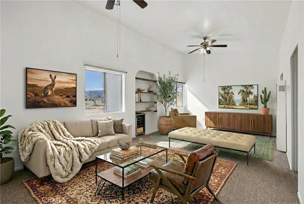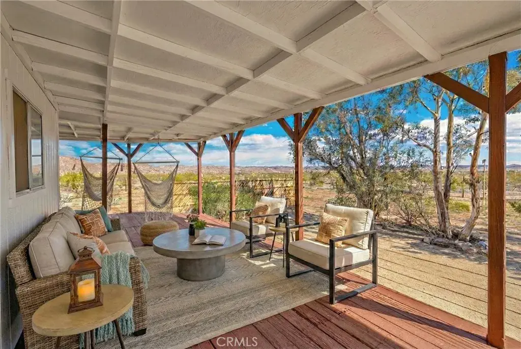 The “magic” of Joshua Tree is on full display here. The fully fenced lot features mature shade trees and panoramic mountain views. With multiple deck patios, you have plenty of room for alfresco family dinners under the stars or quiet sunset cocktails.