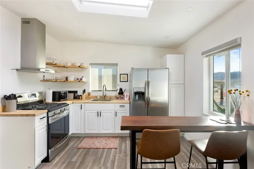 Price Drop! This reimagined desert retreat seamlessly blends modern luxury with the raw beauty of Joshua Tree. Just minutes from JT Village and the National Park, it offers the perfect mix of privacy and convenience. An open-concept design floods the space with natural light, framing stunning Mount San Gorgonio views. The sleek kitchen, with butcher block counters and high-end finishes, is perfect for casual mornings or lively gatherings. Two guest suites with spa-like baths provide serene escapes, while a separate guest studio offers endless possibilities — additional sleeping quarters, creative space, or yoga sanctuary, backdropped by a striking 12-foot glass wall. Designed for effortless indoor-outdoor living, the property features two patios — one for sunrises, the other with direct park views, plus an above-ground spa, fire pit, and hammock lounge. Comfortably sleeping 6-8, this home is both a retreat and a destination. Ready to make it yours?