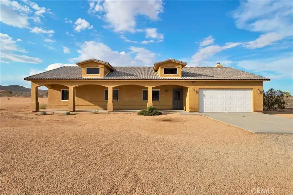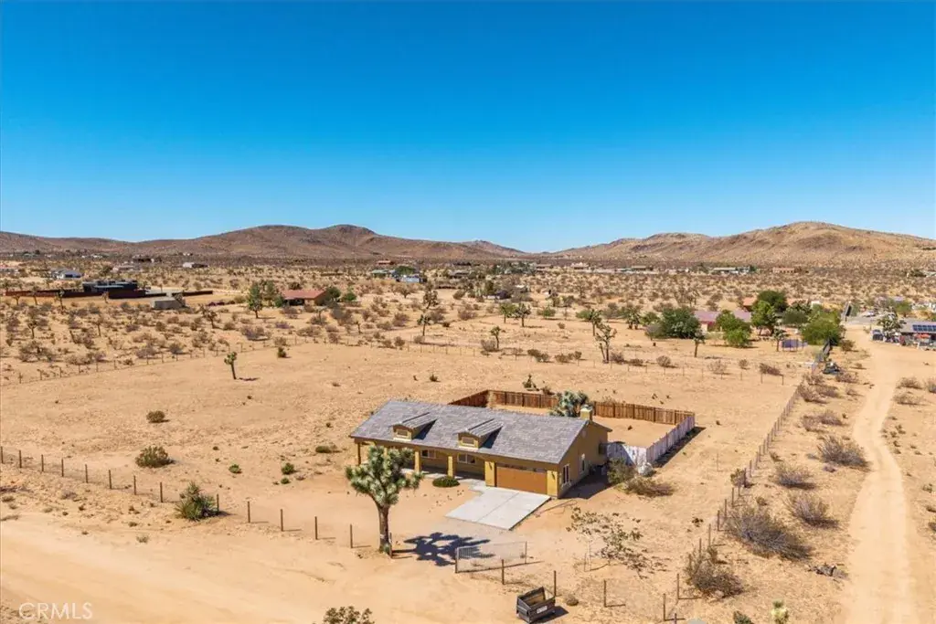 Welcome to your beautiful ranch-style home in peaceful North Joshua Tree! Sitting on 2.5 acres with dormer windows, arches, and sweeping panoramic desert and mountain views, this 3 bedroom, 2 bathroom home offers both charm and modern comfort with no visual power lines to impede the views