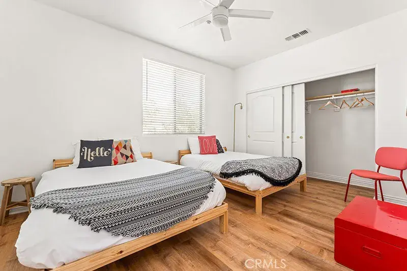 Drop your bags and head straight to the generous backyard where you can sit on the large covered patio with a glass of wine, roast marshmallows on the firepit, experience a soothing sound bath by one of Joshua Tree’s many healers and musicians, or serve a fantastic meal. Watch the kids play in the oversized heated in-ground pool until bedtime when you sneak out for a dip in the spa. Beautifully landscaped and fully fenced, you’ll only want to leave this oasis to tinker in your giant garage with plenty of space for a workshop or storing your desert toys.