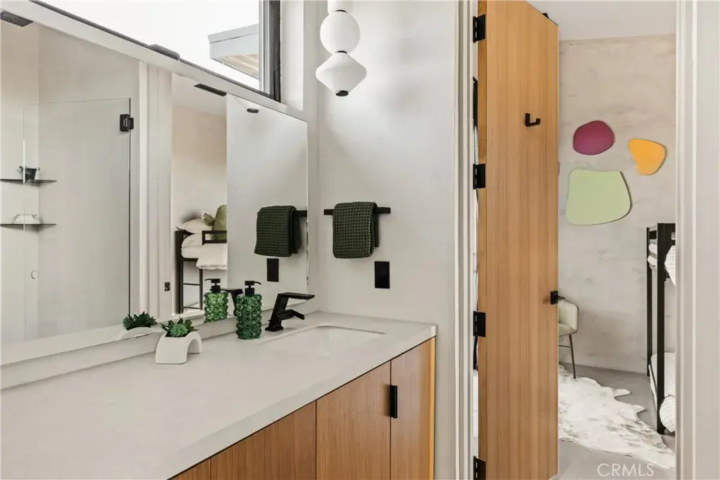 Additional features include owned solar, fire sprinkler system, two-car carport with EV charger, dual-zone HVAC with energy efficient heat pumps, Nest thermostats, laundry closet with washer and dryer, pool heater, and a 7-person, 69 jet Cal Spa. Offered fully operational with short term rental permit and professional management in place. Currently under consideration for an AIA Design Award recognized for its innovation integration form, function and environmental resilience.