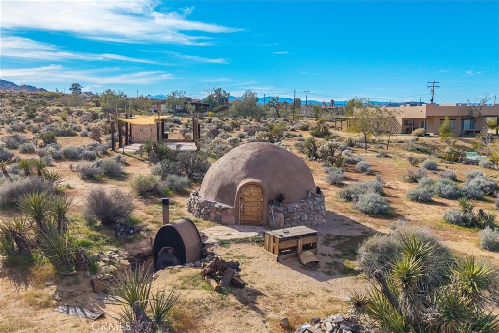 Back outside, you’ll be amazed by the ideal outdoor living space! A large rustic covered patio designed for outdoor dining or as a perfect spot to sit and admire the expansive Joshua Tree skies, incredible views of Joshua Tree National Park, a rare & spacious Temescal sweat lodge, meditation platform, cowboy tub, and more make this not just a backyard but a one-of-a-kind sanctuary!