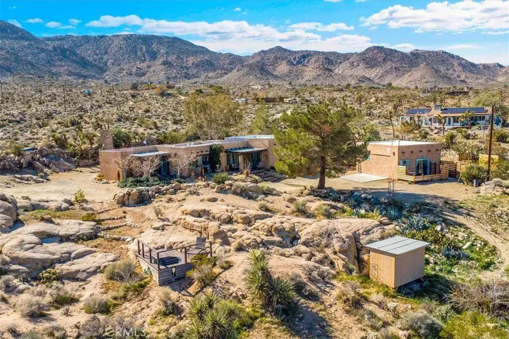 NOW AVAILABLE! Welcome to THE MOONLIGHT MESA ESTATE, comprising of five mindfully curated, exquisitely designed homes ensconced in the rocks and boulders of the magnificent Joshua Tree Highlands. Situated one mile from the entrance to the Joshua Tree National Park and nestled on 2.5 acres of land with expansive mountain and desert views, the property was designed and conceived as a sanctuary retreat by the owner, an artist and architectural designer. This gorgeous, iconic, one-of-a-kind offering with endless opportunities is an absolute must see. Meticulously designed for use as SHORT OR LONG-TERM RENTALS, this unique INVESTMENT OPPORTUNITY has high income potential, or simply serve as a palatial private residence. HIGHLIGHTS:1. PRIME LOCATION: One mile from the Joshua Tree National Park entrance and 3miles from downtown Joshua Tree village 2. INVESTMENT/INCOME POTENTIAL: Five completely private and separate units, boasting Saltillo tile flooring, gorgeously renovated kitchens with Spanish tile backsplash and accents of Mexico, rustic bathrooms, and stained-glass windows.Each of the units has separate entrances, backyards, private patios and gorgeous views that rival those of Joshua Tree National Park.- Moonlight Mesa House: 2 bed/1 bath Spanish Hacienda renovated in 2022- Moonlight Mesa Cottage: 1 bed/1 bath Spanish Hacienda renovated in 2022- Moonlight Mesa Adobe: 1 bed/1 bath ADU built in 2023- Moonlight Mesa Casita: Tiny home/ studio- Starship Enterprise: detached, fully remodeled vintage camper 3. COWBOY/COLD PLUNGE TUB and outdoor yoga deck: built into the rocks as an extension of a large boulder, this is the perfect spot to take a dip after a long day while soaking under kaleidoscope skies. 4. LARGE OUTDOOR ROCK FIREPLACE: Stunning one-of-a-kind rock fireplace with rock chimney, originally built as a pizza oven. Whether you’re seeking a luxury weekend escape or a high-performing short-term rental, we welcome you to The Moonlight Mesa, the most the beautiful, blessed, and magical place in Joshua Tree.