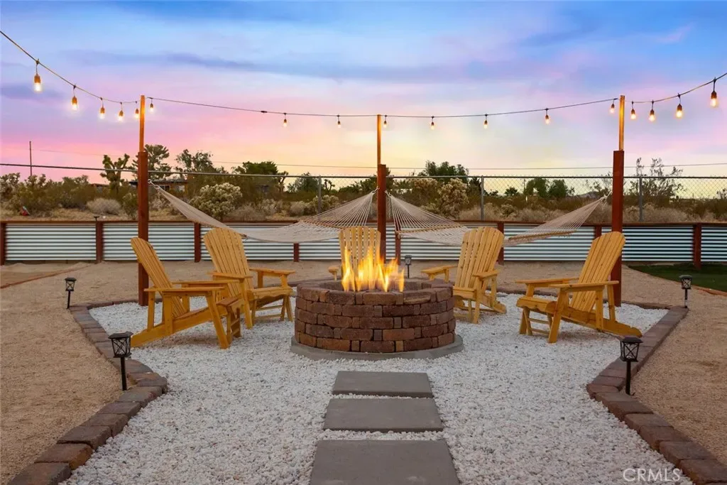 Additional highlights include a concrete driveway and a spacious two-car garage that offers excellent storage potential or could serve as a workshop, hobby space, or studio. The fenced backyard has been thoughtfully finished to create a private outdoor retreat, complete with a covered shade porch, fire pit area, and comfortable lounging space—perfect for relaxing evenings or entertaining under the stars.