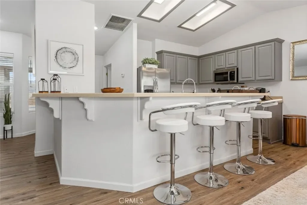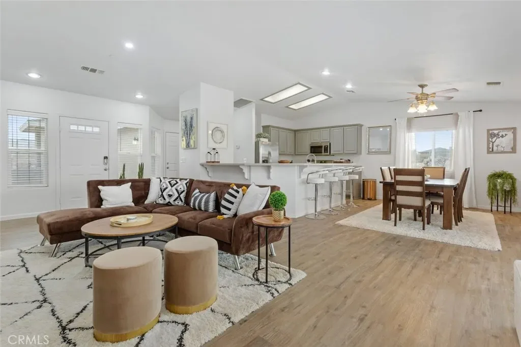 The home features an inviting open floor plan with a bright, well-lit interior designed for comfortable everyday living and easy entertaining. The kitchen includes a convenient breakfast bar that opens to the main living and dining areas, creating a spacious and connected gathering space for family and guests.