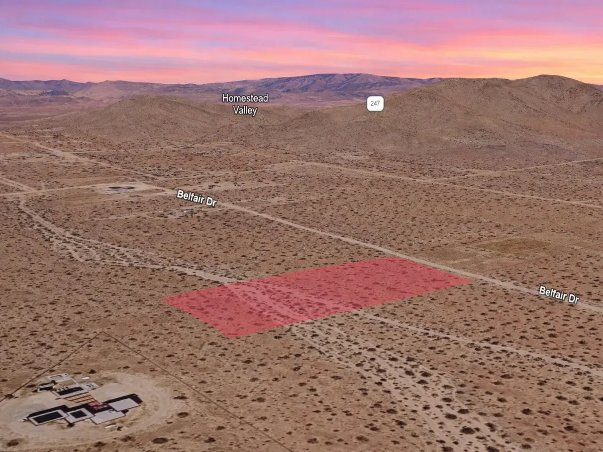 Discover your opportunity to own land in the iconic desert community of Joshua Tree, CA! This parcel on Belfair Dr offers a great canvas for a future home, desert retreat, or investment property in an area known for its natural beauty and growing demand. Surrounded by open desert landscapes and scattered homesteads, this property provides a peaceful setting with wide-open views and star-filled night skies. Conveniently located within driving distance to Joshua Tree National Park, local shops, dining, and other amenities, it offers the perfect blend of seclusion and accessibility. Whether you’re looking to build now or hold for future appreciation, this property presents strong potential in one of Southern California’s most unique and sought-after desert markets. Images are for reference only and may not reflect the exact location or current condition of the property. Buyer to verify all information including but not limited to lot location, boundaries, utilities, zoning, access, addressing, and intended uses with the appropriate professionals and local agencies.