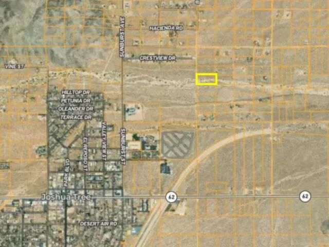 Panoramic views! 5 acres with road access and power nearby. Located in the world famous Joshua Tree. Perched on a ridge above a dry wash with a slab from an old Homestead cabin. Overlooking downtown Joshua Tree with vistas of the Little San Bernardino Mtn range, Copper Mtn, and Mt San Gorgonio with snow caps. Starry nights. Horse property. Beautiful desert fauna with Joshua Trees, yuccas, chollas, beaver tails and creosote bushes. Not far from the Joshua Tree National Monument where about 3 million tourists visit annually. Hot vacation area. Joshua Tree is quickly becoming a luxury zip code with more million dollar home sales every year. Idea for a designer compound with views. The property appears to be zoned RL-5 which allows owners limited camping. Most 5 acre lots allow for two homes. No water so go with a well. More celebrities, artists and musicians are now calling JT home than ever before. 12 minutes to the JTNM. 55 minutes to Palm Springs. 130 miles to LA. Buyers to check with county planners on all building and usage questions. Buyers must contact all appropriate utilities agencies for utility questions. Buyers must contact the county on access and easements. Address is for marketing purposes only, property does not have a street address. Photos are not of the property but taken nearby. Don’t Wait! – Call Now! GPS: 34.146556, -116.299415 – APN: 0604-261-17-0000