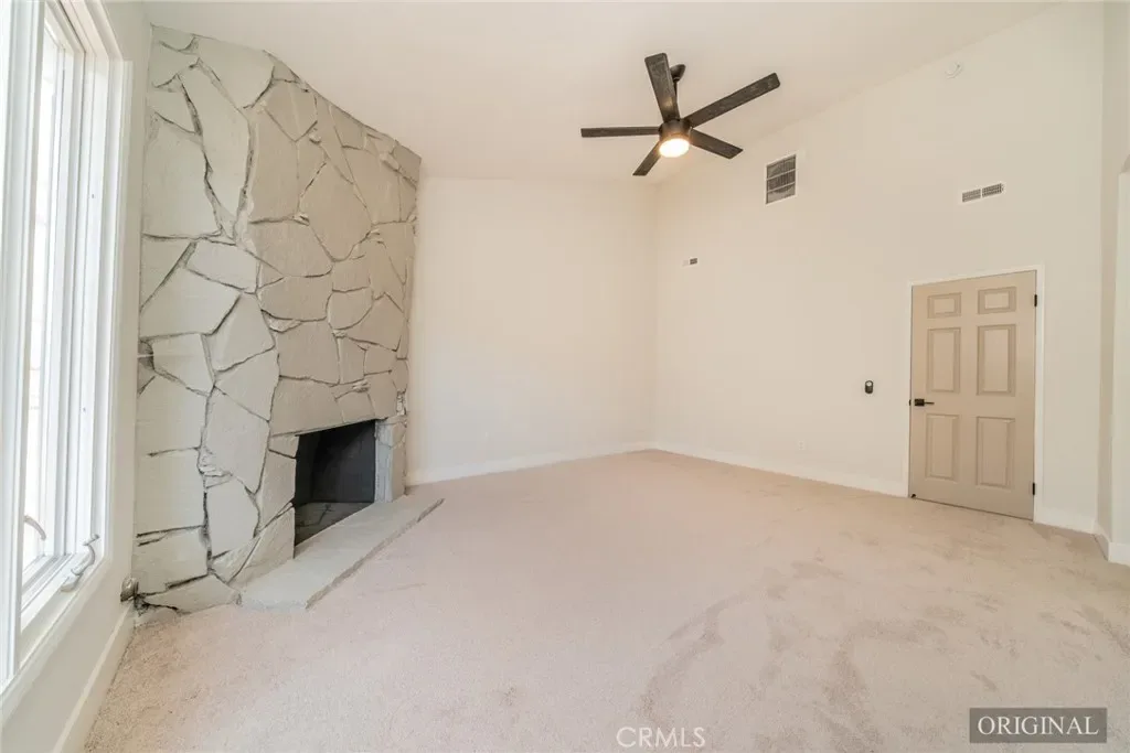 The main residence offers 4 bedrooms and 2.5 bathrooms with a functional, open layout designed for both everyday living and entertaining. Interior upgrades include fresh paint, laminate wood flooring, new carpet in bedrooms, and an updated kitchen featuring quartz countertops, new cabinetry, subway tile backsplash, and stainless-steel appliances. The primary suite includes its own fireplace, creating a private retreat feel.