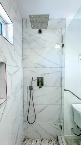 The stylish bathrooms are finished with elegant tile work, and the stackable laundry room offers space-saving convenience. RV parking is available, perfect for adventurous travel or additional storage.