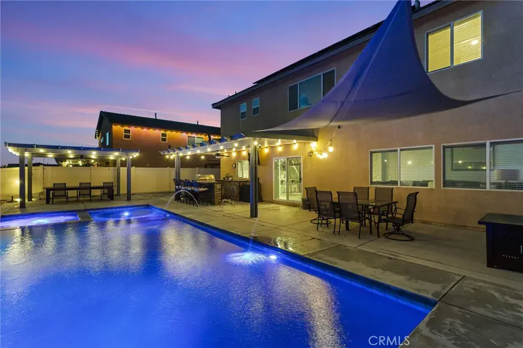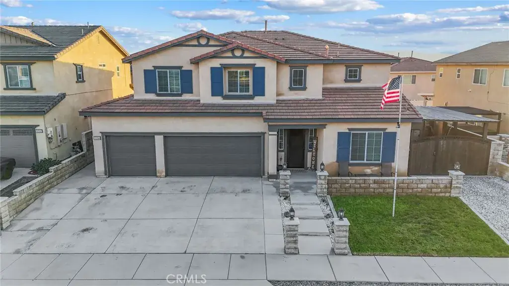 Move-in ready with no HOA, RV potential, and an oversized three-car garage, this stunning two-story home is tucked at the end of a quiet cul-de-sac and delivers the space, privacy, and lifestyle today’s buyers crave. From the moment you enter, the light-filled open layout, brand-new tile flooring, and expansive living areas set the stage for effortless everyday living and unforgettable gatherings. The chef-inspired kitchen is the heart of the home, featuring a large island, walk-in pantry, stainless steel appliances and gas cooktop, all seamlessly connected to the dining and family rooms with direct backyard access. A private downstairs bedroom with a full bath is ideal for guests or multigenerational living, while a versatile bonus room offers space for a home office, playroom, or creative retreat. Upstairs, four additional bedrooms are complemented by a spacious loft, perfect for a second living area or study space. The primary suite is a true sanctuary with a generous ensuite bath and walk-in closet. Step outside to an entertainer’s dream backyard showcasing a custom resort-style pool built in 2021 with a baja shelf, built-in bar stools, spa, LED lighting, WiFi-controlled water features, newly poured low-maintenance concrete, and a built-in BBQ. Additional highlights include solar for predictable energy costs, a 220-wired garage, potential RV or trailer parking, and a prime location just minutes from freeways, shopping, and SilverLakes Sports Park. This is more than a home—it’s where comfort, lifestyle, and lasting memories come together.