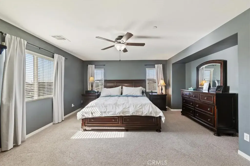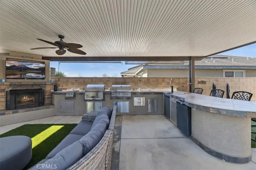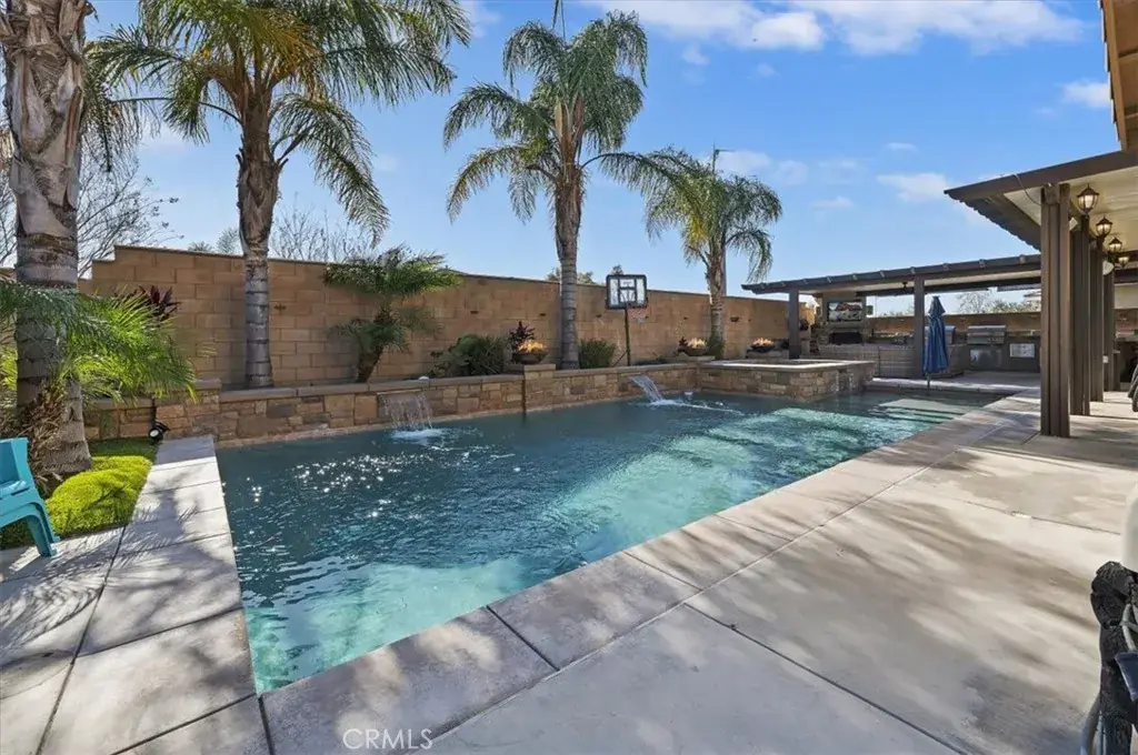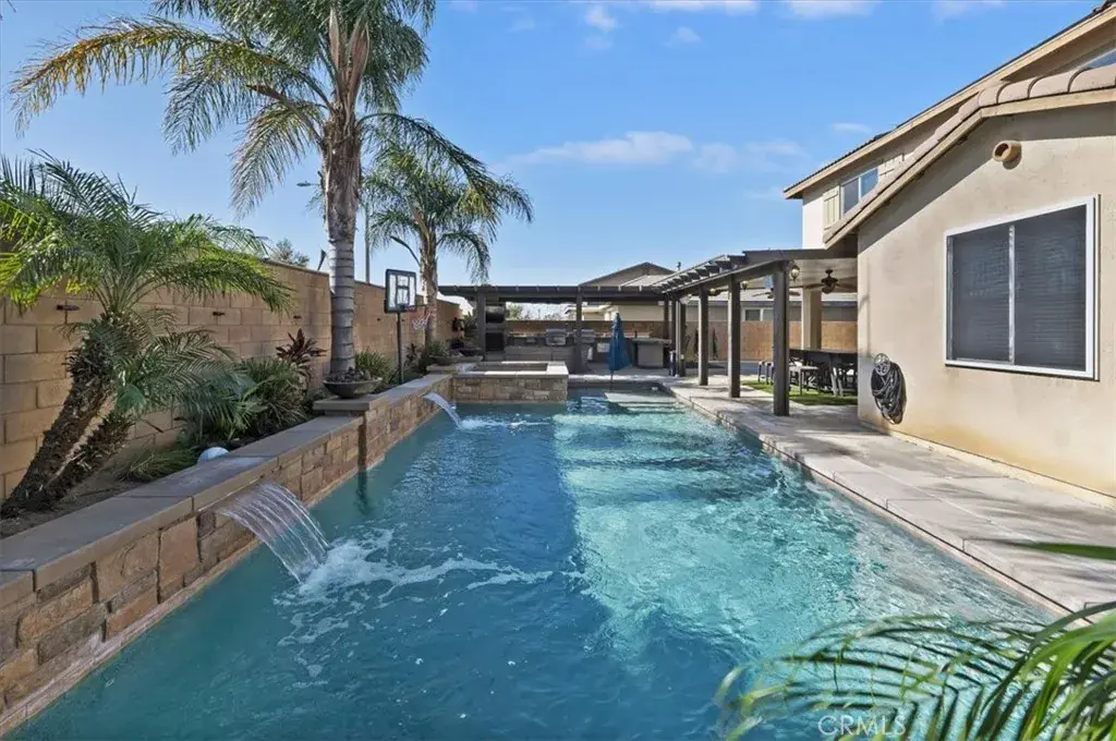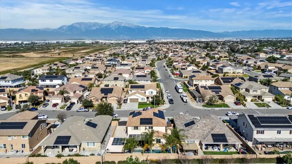 Hitting the market for the very first time! This well-maintained two-story home located in the Harvest Villages community of Jurupa Valley. If you’ve been searching for a home that truly checks all the boxes, your wait is over. This property offers exceptional space & flexibility, featuring 2 driveways with ample parking & dedicated RV access, ideal for parking an RV, camper, or boat & eliminating the need for off-site storage. Designed for year-round enjoyment, the backyard is an entertainer’s dream, showcasing a saltwater rectangular pool with sheer-descent waterfalls, beach entry, and an elevated spa. The outdoor space features a custom exterior fireplace with built-in wood storage, creating an inviting setting for evening gatherings. Fully equipped built-in barbecue area with multiple grills, an outdoor sink, refrigerator, & a tiled kitchen island with generous seating, all located under a covered Alumawood patio. A second covered Alumawood patio offers additional seating & outdoor entertaining space, making this backyard ideal for hosting. As you step inside, you’ll notice modern tile flooring throughout most of the first level, an office that can easily be converted into an additional bedroom, & a seamless open floor plan connecting the kitchen, family room, & dining area. The kitchen offers abundant cabinetry, stainless steel appliances, double ovens, a center island with seating & pendant lighting, a massive walk-in pantry, & a butler’s area, all overlooking the family room with a fireplace. The dining area is accented by a black farmhouse-style chandelier. A downstairs bedroom & full bathroom are conveniently located on the main level. The second level features a spacious loft, ideal for a media room or additional living area, along with a upstairs laundry room with extra storage and built-in shelving. Two generously sized secondary bedrooms share a full bathroom, providing comfortable accommodations. The primary suite serves as a private retreat, featuring a ceiling fan, dual sinks, a dedicated vanity area, a walk-in shower, and a soaking tub. The expansive walk-in closet is designed to easily accommodate a large wardrobe. Additional highlights include 37 solar panels owned by the seller, providing some energy savings. Everything is at your fingertips with a central location near MOST major freeways, Vernola Marketplace, and Eastvale Gateway for shopping and dining out. Don’t miss your chance to host poolside gatherings this year — act now!