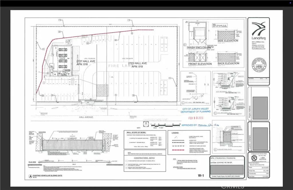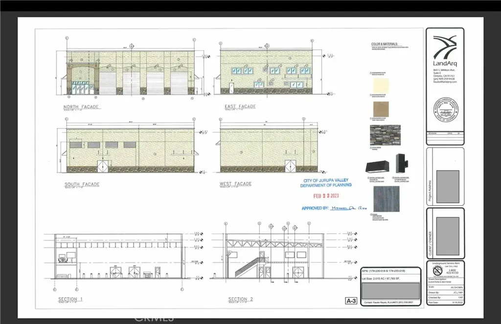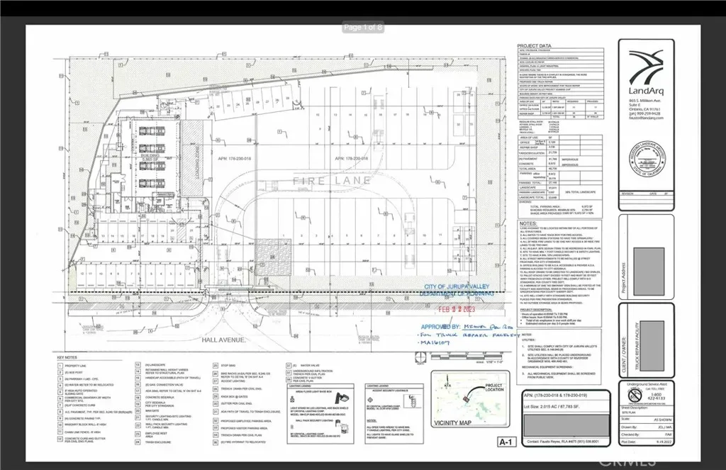 An amazing opportunity to own 2.02 Acres of Entitled Land with Approved and Permitted Plans. The property is a Manufacture – Service – Commercial zoned 2.02 Acre lot with utilities and approved plans for a Trucking Service Building. This was designed, planned and permitted for up to 20 full size Big Rigs and Trailers, in addition to 21 front tractor units – as well as a 5,685 sqft Service building that can have 4 tractor units worked on at once. In addition, it was also planned for a 896 sqft office, meeting room, Full Bathroom and break area on the second floor. This lot consists of two parcel APN’s (#178-230-019 and #178-230-018), very near the 60 freeway and a few miles from the 91 freeway and 215 freeway. Please view the attached documentation(pictures) and reach listing agents with any other questions in regards to zoning, plans and permits.