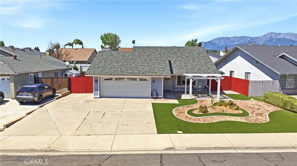 Step outside to a low-maintenance front yard with artificial grass and a welcoming covered front porch with beautiful mountain views. The backyard is perfect for relaxing or entertaining, featuring an Alumawood patio cover and private sliding door access from the primary suite.