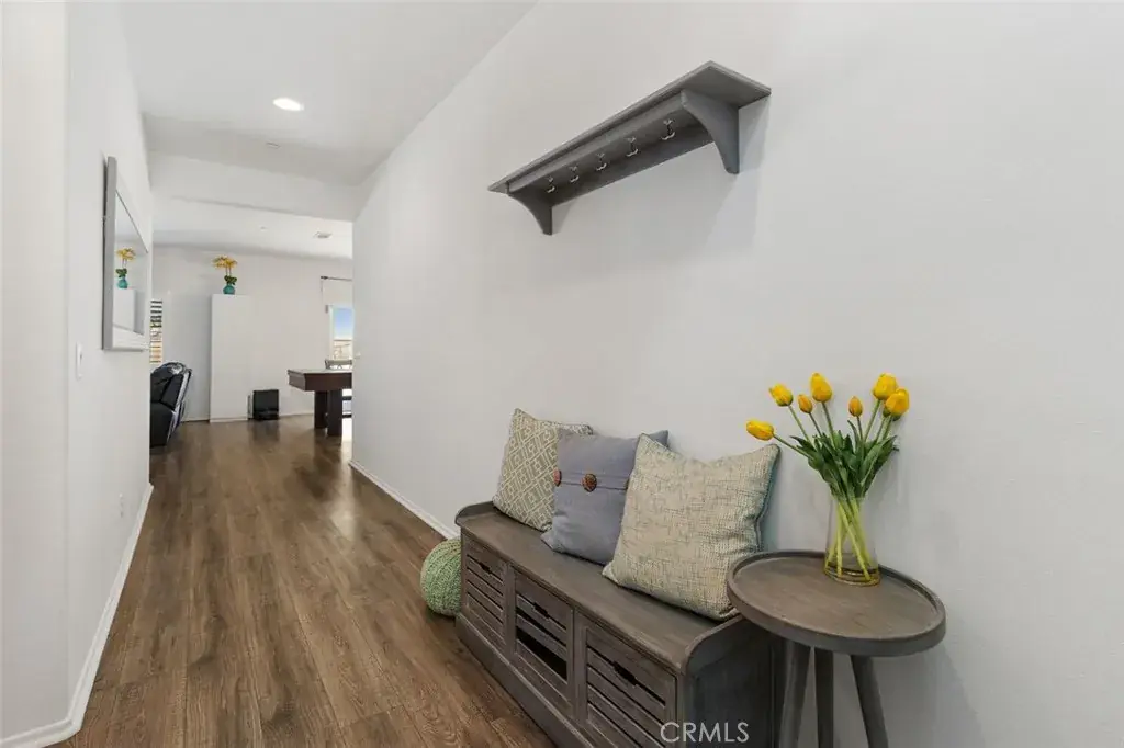 Located in the desirable The Quarry community with no HOA, this beautiful pool home offers scenic hill views and a versatile floor plan just minutes from the renowned Oak Quarry Golf Club and directly across from Quarry Park. Inside, the thoughtfully designed open-concept layout seamlessly connects the kitchen, dining area, and family room, creating an ideal space for everyday living and entertaining. The kitchen features abundant cabinetry, generous counter space, and an island overlooking the main living areas. A bedroom and full bathroom on the main floor provide flexibility for guests, extended family, or a private office. Upstairs you’ll find three additional bedrooms including a spacious primary suite with its own bath, along with a large loft that can serve as a media room, playroom, or second living space. Step outside to your private backyard retreat featuring a sparkling pool, outdoor firepit, and patio area perfect for relaxing or entertaining while enjoying the surrounding hill views. The home also includes paid-off solar panels, offering energy efficiency and long-term savings—an ideal complement to comfortable Southern California living.
