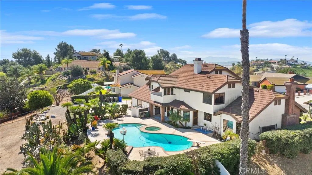 VIEW!!! VIEW!! VIEW!!! Incredible panoramic view of city lights and beautiful hills. BUILT IN POOL AND SPA! Enjoy the comfort and peacefulness of this very unique home. This home has it all! So many hard to find features including; HUGE master bedroom with 3 closets (2 walk in closets), built in safe, huge master bathroom with dual sinks, separate tub and shower plus a balcony off of the master bedroom to enjoy the incredible view with your morning coffee. 1 bedroom and bathroom downstairs, with a separate staircase leading to a massive 23 x 19 room with an entire wall of cabinets-great for multi-generation living, it could be an additional living room, office for remote work from home or a game room! Large kitchen with granite counters breakfast nook and pantry, family room with bar, dual sided fireplace, formal dining room, Indoor laundry room, Central vacuum system, alarm system, steel designed to look like tile roof for extra durability, 2 central ac units, large kitchen with granite counters, 4 car garage with tons of cabinets plus bring the toys! Lots of space for RV, boats, trailers, extra cars!