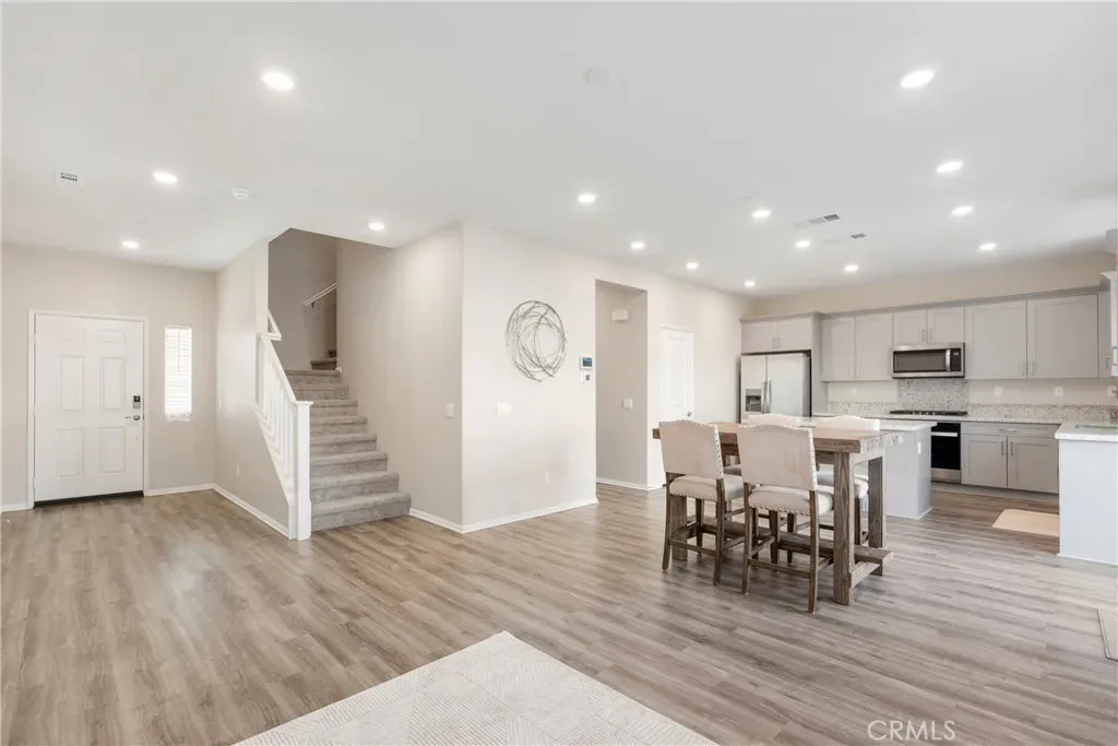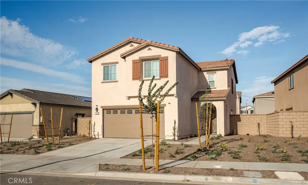 Welcome Home!!! This beautifully newly built 4 bedrooms, 3 bath home in the beautiful city of Jurupa Valley is perfectly situated in a gorgeous neighborhood. The spacious kitchen has stainless steel appliances and a large island with quartz countertop with dining counter space and opens seamlessly to the family room making it perfect for entertaining. This home also includes an upstairs loft, perfect for an office or additional siting area. One bedroom and one bathroom located on main level, perfect for guest or mother in law quarter, with 3 additional bedrooms with walk in closets and 2 bathrooms upstairs as well as laundry room. This home is located close to shopping and dining. With a 2 car garage plus nice size drive way to accommodate additional vehicles. Home includes solar panels which are owner owned & would be included in the sale of home. This home combines modern living with a prime location. Don’t miss out on this exceptional opportunity.