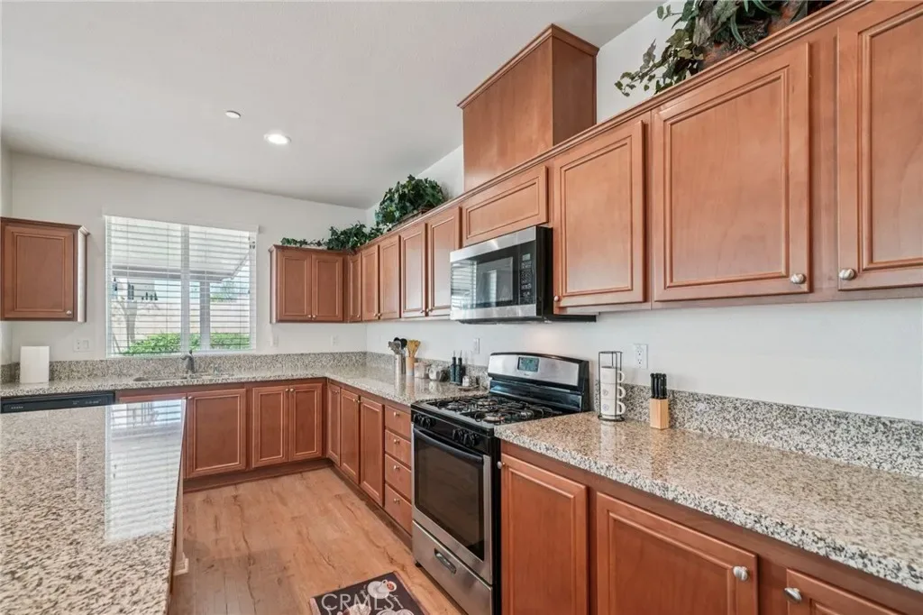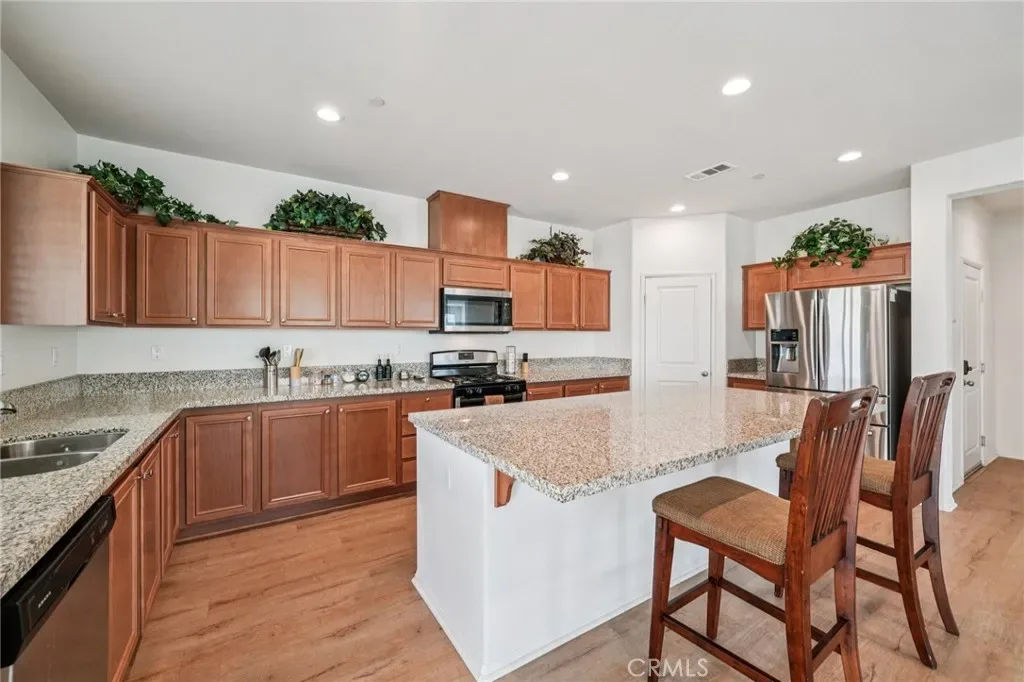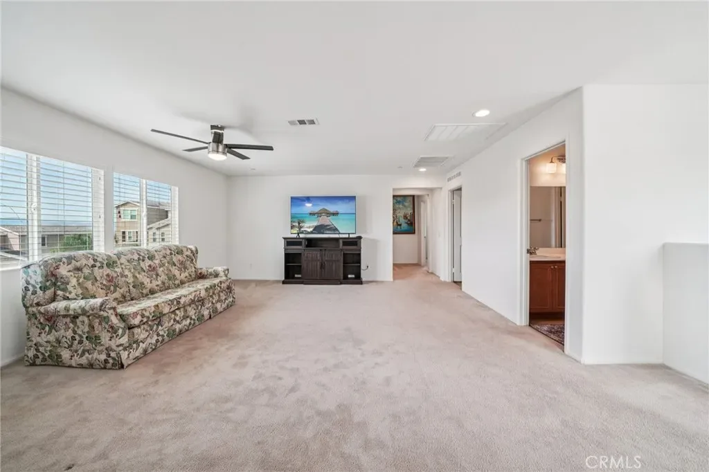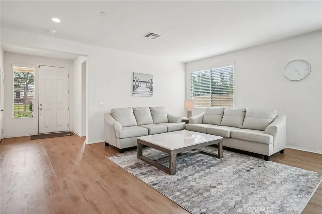 Located in the Cantera community of Jurupa Valley, this 4-bedroom, 3.5-bath home offers 2,959 sqft of living space on an 8,276 sqft lot. Set in a well-kept neighborhood known for pride of ownership, with convenient access to the 60 freeway, Oak Quarry Golf Club, shopping, and dining.The layout is open and functional, with natural light throughout and a seamless flow between the living, dining, and kitchen areas—making it easy to entertain or enjoy everyday living. The kitchen features a large center island, granite countertops, ample cabinetry, and a pantry. A main floor bedroom and full bathroom, along with a half bath, offer flexibility for guests or multi-generational living. Upstairs includes a spacious loft—ideal as a second living area, home office, or game room. The primary suite offers a private retreat with soaking tub, separate shower, and walk-in closet. Two additional bedrooms, a full bath, and laundry room complete the second floor. Step outside to a backyard with covered patio—perfect for relaxing evenings or weekend gatherings. The attached 2-car garage with extended tandem space adds flexibility for a third vehicle, storage, or additional use. Enjoy nearby park access and local hiking trails, adding to the overall lifestyle this home offers. No HOA. Located within the Jurupa Unified School District.