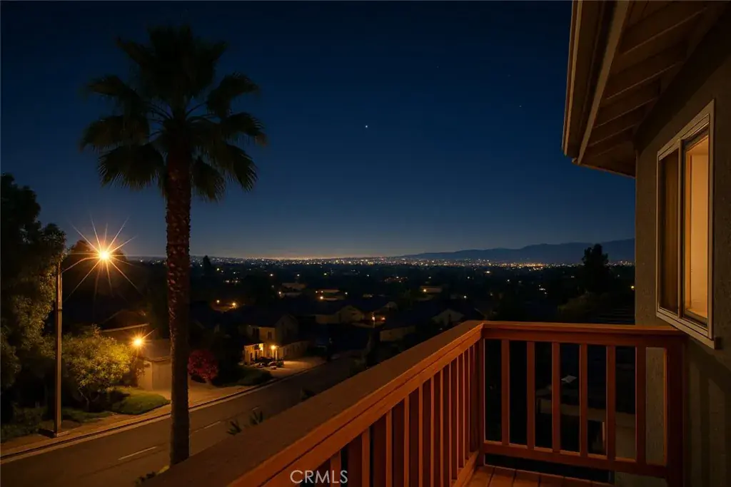 The upstairs primary suite offers a private balcony showcasing sweeping views of the city, surrounding mountains, and twinkling evening lights. The spa-like ensuite includes dual sinks, a soaking tub, and a separate glass shower for ultimate relaxation.