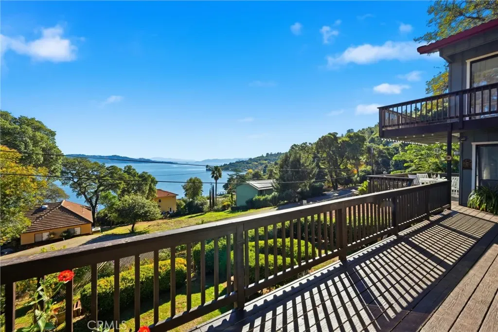 Experience the best of Lake County living in this beautifully refreshed home, perfectly situated on a scenic quarter acre in the highly sought-after Buckingham Park community. Offering stunning lake views, thoughtful updates, and lush, mature gardens, this property invites you to relax, entertain, and enjoy the true beauty of Clear Lake living. Step inside to discover a bright and welcoming open-concept living space that feels both inviting and refined. Large windows frame the sparkling lake views, while the charming antique wood stove adds warmth and character — perfect for cozy evenings or gatherings with family and friends. The remodeled kitchen blends style and function with new stainless steel appliances, updated cabinetry, and plenty of prep space for home chefs and entertainers alike. Upstairs, the serene primary suite provides a peaceful retreat complete with a private ensuite bath and a balcony overlooking the lake — an ideal spot for your morning coffee or to unwind at sunset. The additional bedrooms on the main level are spacious and freshly painted, with new flooring throughout much of the home lending a clean, modern feel. Every detail has been thoughtfully maintained and upgraded, including a fresh coat of paint on all decks and interior doors, new garage doors with a convenient battery backup system, new gutters, and a beautifully remodeled downstairs bathroom featuring a soaking tub and separate shower. The home also includes updated window coverings, ceiling fans, and a reliable HVAC system recently serviced and in excellent working condition. Outdoors, you’ll find an enchanting setting that’s truly a gardener’s paradise. Flower beds bursting with color feature roses, dahlias, lilies, daisies, and more—all supported by an efficient watering system. Fruit trees including apple, plumcot, lemon, lime, and peach provide a touch of country charm and seasonal abundance. The wraparound deck and gazebo offer the perfect backdrop for entertaining, relaxing, or simply soaking in the peaceful atmosphere. Residents of Buckingham Park enjoy exclusive access to community amenities including a private beach, boat launch, dock, picnic area, clubhouse, and golf course, all within walking distance. Whether you’re looking for a weekend getaway or a full-time residence, this home offers the ideal combination of comfort, style, and connection to nature. Come see for yourself why life is better by the lake — this Buckingham beauty is ready to welcome you home.