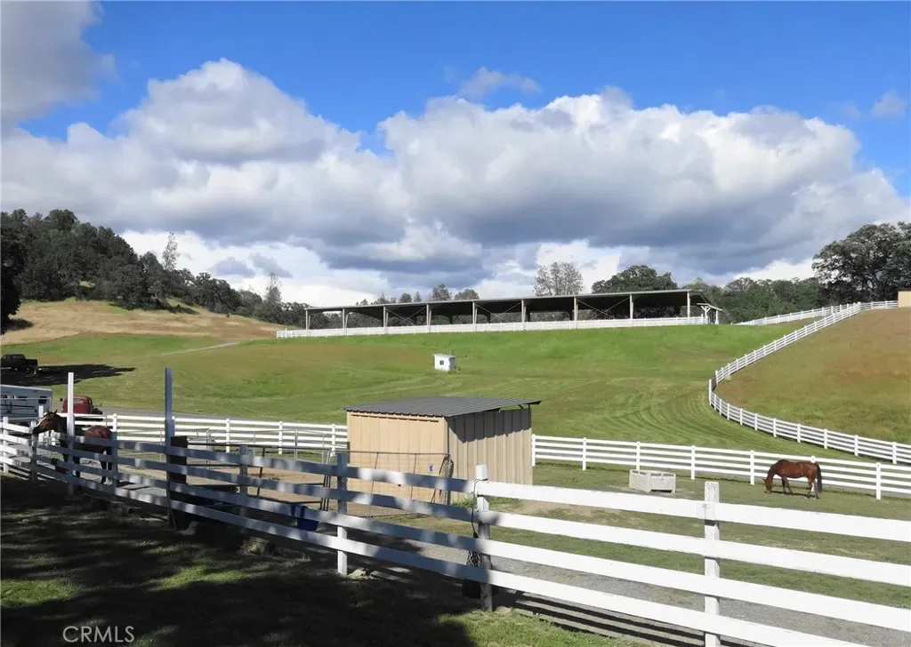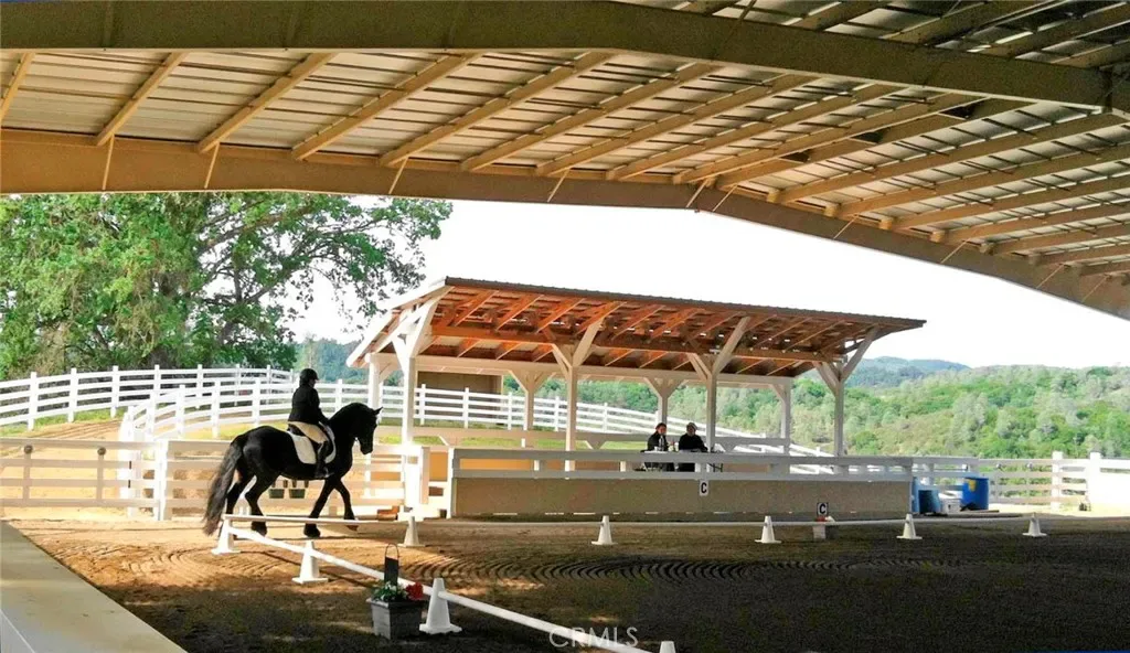 Welcome to 8900 Wight Way, a rare equestrian retreat designed for horse enthusiasts, ranchers, and those seeking versatile country living. Set on expansive acreage with multiple wells, pastures, and arenas, this property combines functional infrastructure with unique amenities for events, training, and comfortable living. The main residence is a charming 3-bedroom, 2-bath home with a large, fenced yard, updated deck with storage, and a huge washer/dryer set-up perfect for horse blankets. Additional features include a heat pump system, mini splits, and a metal roof for lasting durability. Equestrian facilities are extensive and thoughtfully designed: a covered, all-steel, 100×235 Olympic-sized arena with professional-grade footing, LED lighting, full sound and judging system, septic hookup, and booths for spectators, and stunning views. Riders also enjoy a 40×80 meter open arena, gravel pad for 80 ft round pens, and miles of trail systems on and around the property. Multiple paddocks (up to 14), mare and gelding pastures, and double-fenced walkways with water access provide excellent care and separation for horses. A wood barn with stalls, birthing/recovery stalls, hay storage, tack areas, wash rack with hot/cold water, and comfort flooring complete the setup. The ranch is equally well-equipped with a 50×70 shop (built 2023) featuring solar capability, LED lighting, multiple roll-up doors, a chain hoist, and ample 50/30-amp service. Additional highlights include a smokehouse, butcher shop with bathroom, year-round pond, leach fields, and 4-rail fencing without barbed wire. Parking is abundant, with multiple gated entrances, long-term parking near the shop, and an easement for larger vehicles. Whether you’re raising horses, hosting events, or running a ranching operation, 8900 Wight Way is built to handle it all. The property has been home to cattle, equestrian shows, 4-H, and Dressage Society events, and even comes with a 1949 tractor, electrical Solectrac PF4000 tractor with attachments, and Cavaletti equipment for training. With Adobe Creek Reservoir nearby and a strong community presence, this property offers unmatched opportunity and flexibility. Horses thrive here—the pastures, fencing, and layout make for an inviting, calm environment where they’ll come right up to greet you. 8900 Wight Way – a one-of-a-kind equestrian estate blending ranching history, modern upgrades, and event-ready amenities.