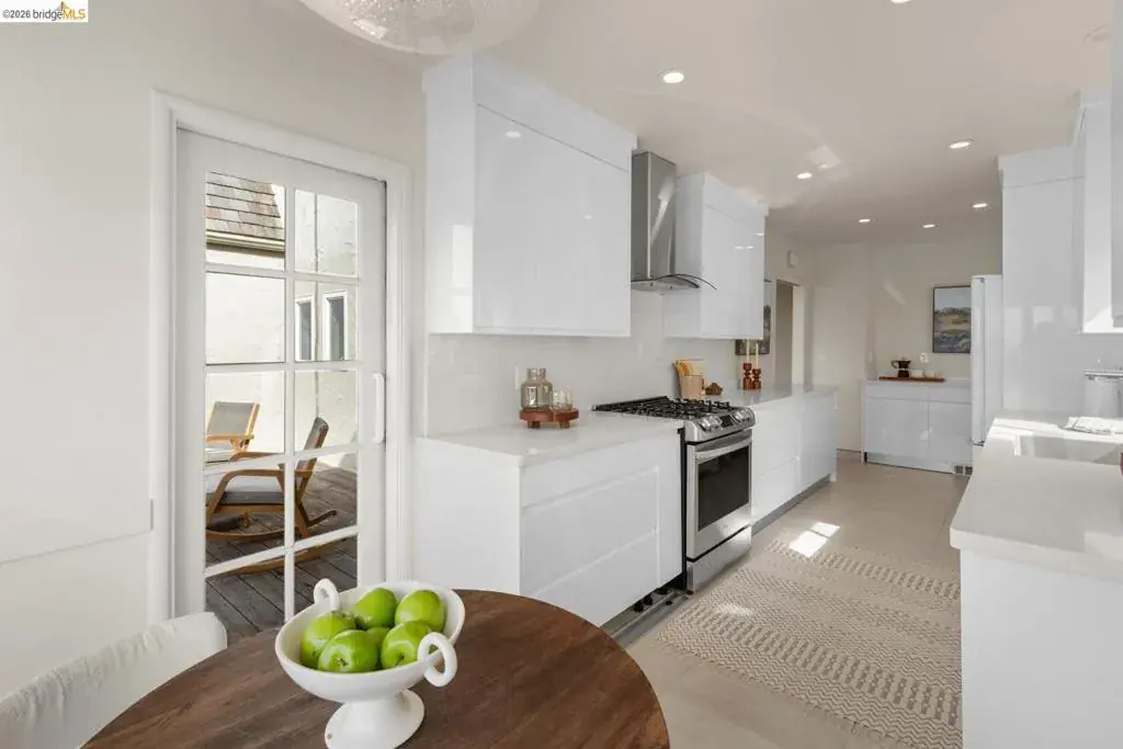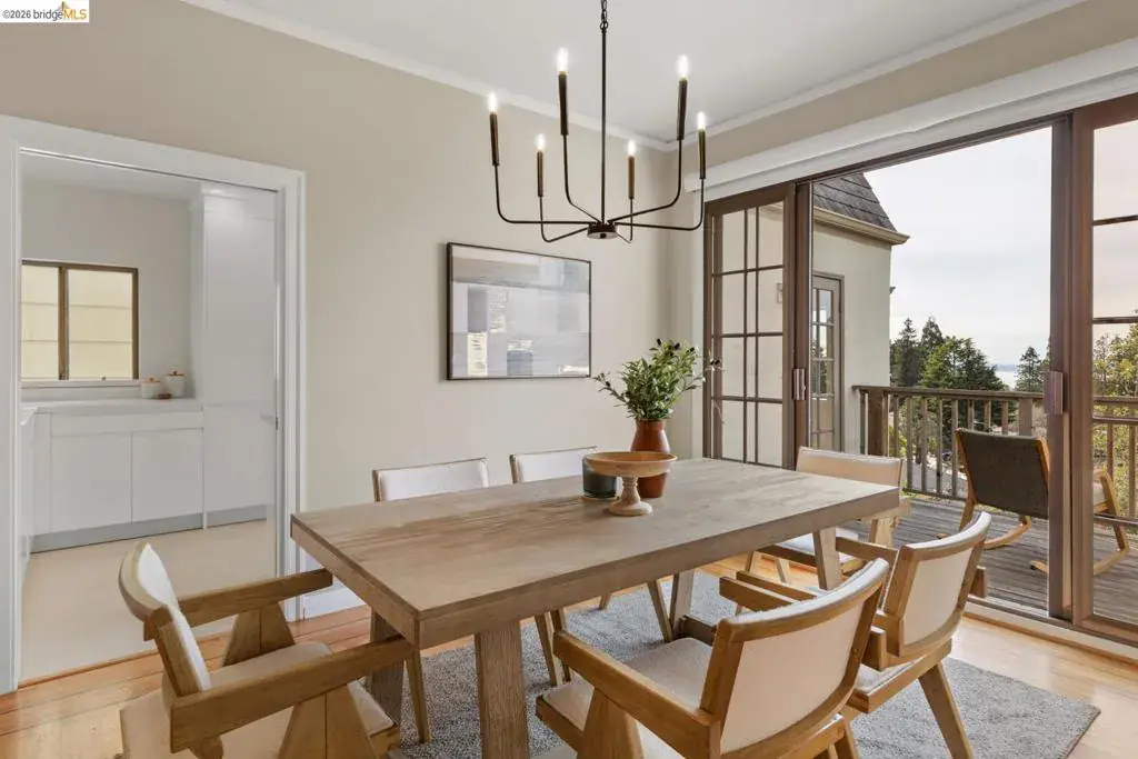Tucked away on a quiet street, this charming Tudor is located on a peaceful cul-de-sac in prime Kensington location with exceptional views. Level-in entry to living room with fireplace and extra-height ceilings that opens to a front deck and connects to dining room overlooking a balcony and views towards the Bay. The remodeled eat-in kitchen is flooded with light and has sweeping Bay views. Two bedrooms and a luxuriously remodeled bath on entry level, upstairs primary suite with panoramic vistas. Spacious lower-level family or rec room plus huge unfinished basement with high ceilings and abundant light (great potential). Level, fenced yard ideal for gardening and play. Located ½ block to the town park and ½ block to top-rated Hilltop elementary school and close to Kensington shopping, public transport and highways. A peaceful retreat just a short drive from downtown and steps from Tilden Park trails, the Little Farm, golf course, and miles of hiking and biking.