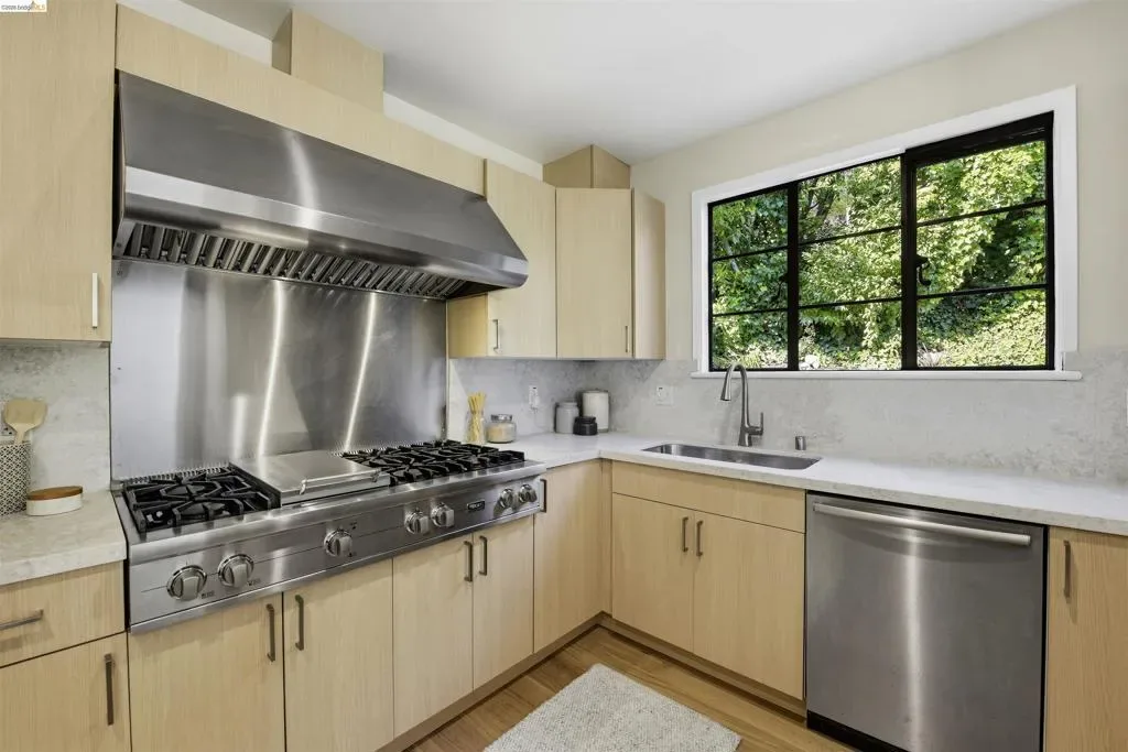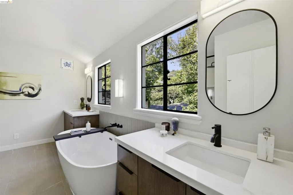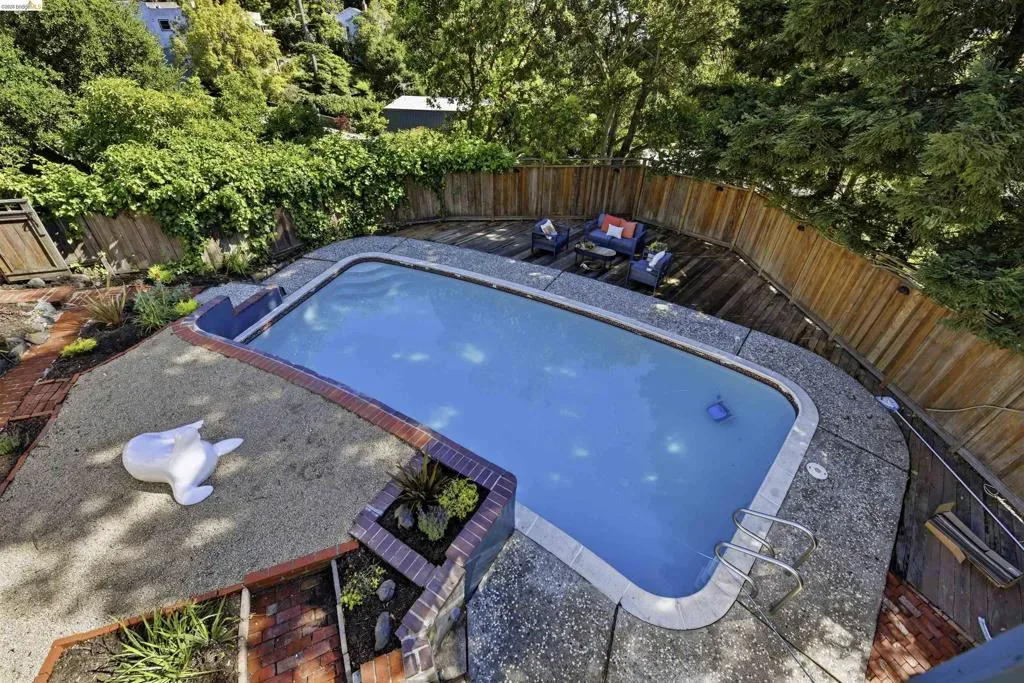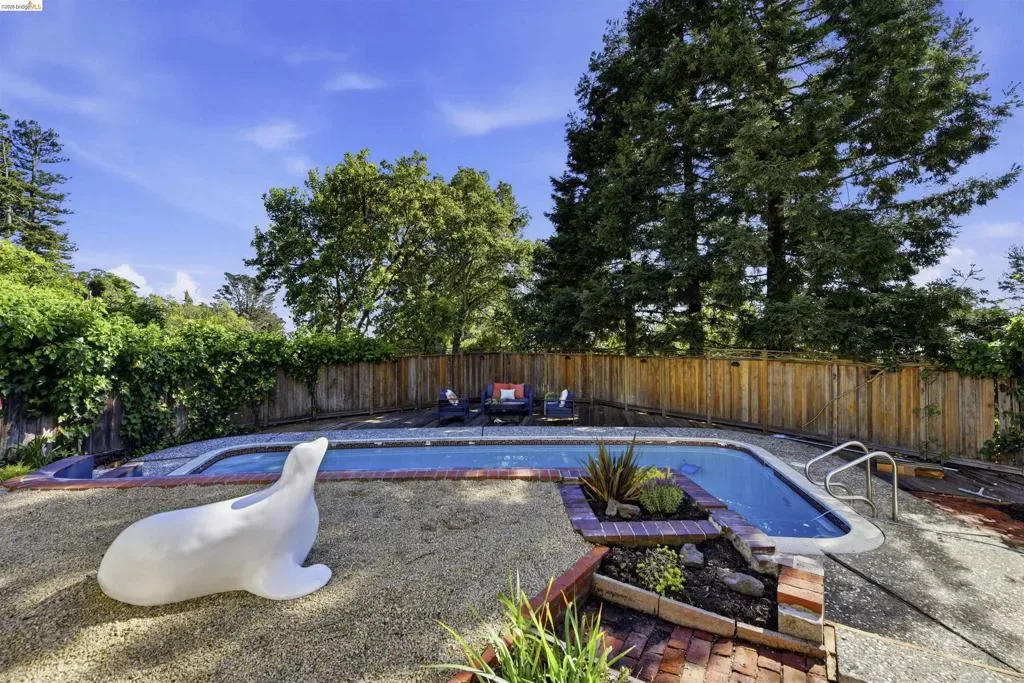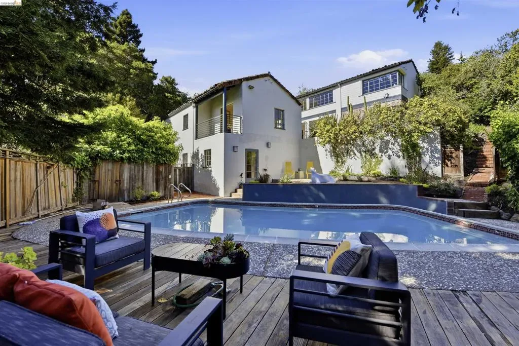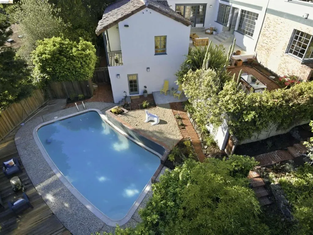 Magnificent Mediterranean villa, thoughtfully reimagined with extensive remodeling and lush landscaping, set in the desirable Kensington Hills. This exceptional estate offers 6+ bedrooms and 3+ bathrooms on a large, private, and secluded lot, complete with a serene courtyard and sparkling pool. The beautifully remodeled kitchen features new custom cabinetry, honed stone countertops, and high-end appliances, seamlessly connecting to a formal dining room and a bright, inviting breakfast area. A grand living room with soaring cathedral ceilings and a fireplace creates an impressive yet comfortable gathering space. Upstairs, the luxurious primary suite offers stunning Bay views, built-in bird’s-eye maple desks, and a spa-like bathroom with both a soaking tub and separate shower. An adjoining room provides the perfect space for a nursery, office, or retreat, along with convenient laundry access. The lower levels include five additional bedrooms, two bathrooms, a wine cellar, a secondary laundry room, abundant storage, and direct access to expansive decks and the tranquil pool area—ideal for indoor-outdoor living. Located just minutes from charming Kensington Village and the beautiful Blake Gardens, this home offers a rare blend of privacy, elegance, and convenience.
