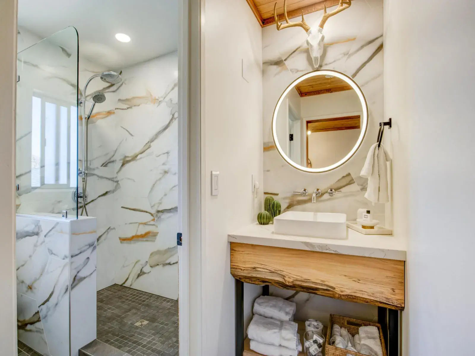 rustic lines create a nostalgic ambiance, while thoughtful improvements