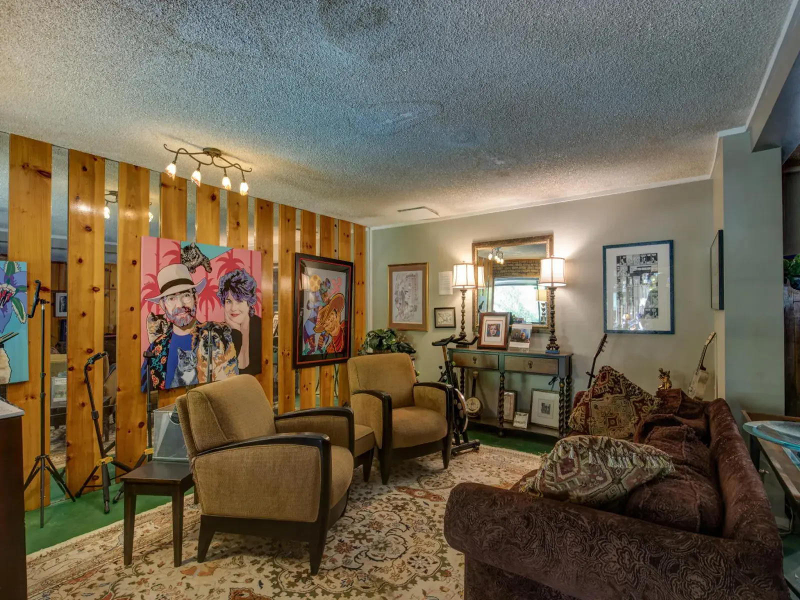 modern updates. Its knotty-pine interiors, pastel-pink tiled showers, and