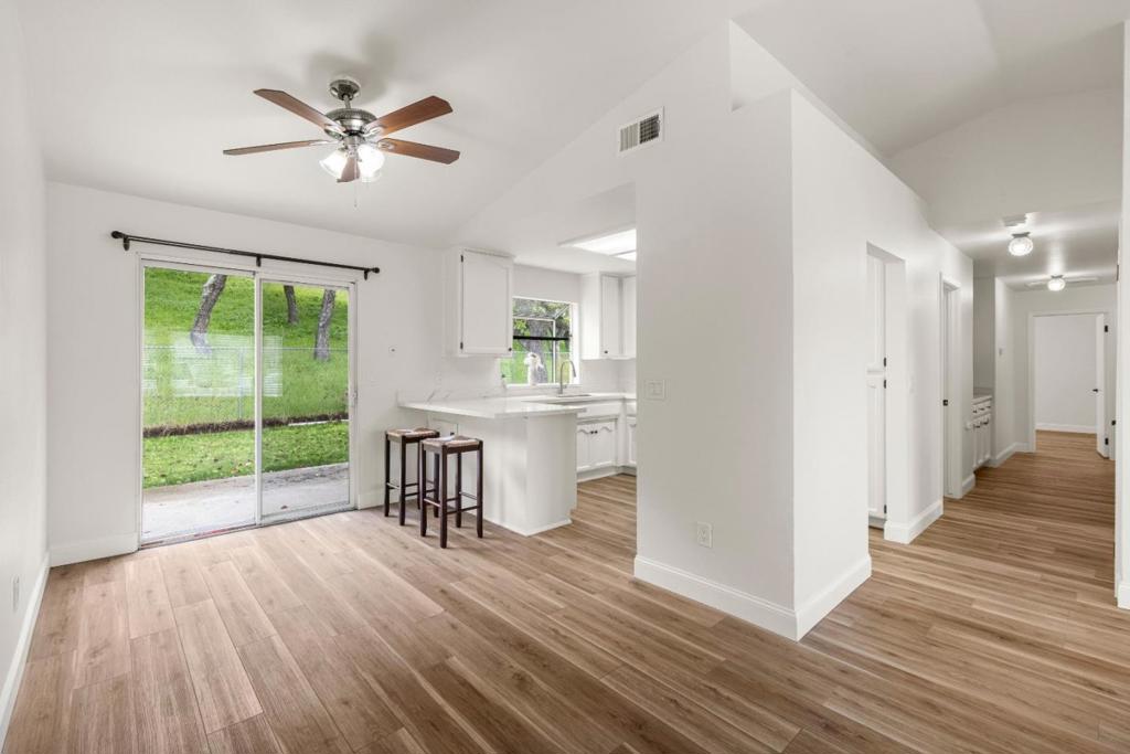 This charming Pine Meadow home blends comfort with practical updates in a welcoming King City neighborhood. Offering 3 bedrooms and 2 bathrooms across approximately 1,300± sq ft, the home features vinyl plank flooring throughout, including the laundry room, creating a seamless and low-maintenance interior. The kitchen includes quartz countertops, stainless steel undermount sink, gas oven range with hood, and a garden window that adds warmth and character. A breakfast nook provides a comfortable place for casual meals. The primary suite includes a walk-in closet and sliding door access to the backyard, with additional access from the kitchen for convenient outdoor enjoyment. Situated on a 6,000± sq ft lot, located near parks within walking distance and surrounded by a friendly community atmosphere, this home offers a cozy setting in an established neighborhood.