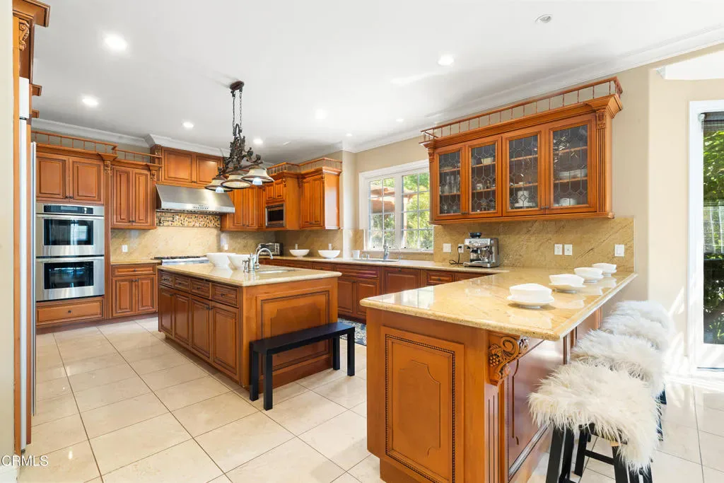 Welcome to this stunning Mediterranean luxury home nestled in the quiet and prestigious neighborhood of La Canada Flintridge. Situated in the heart of nature, this exquisite residence features 5,657sq.ft and occupies an approx. 19,629 sq.ft lot with landscaped gardens that are truly a sight to behold.With 5 spacious rooms and 6 bathrooms, each bedroom boasting its own private bathroom, this home provides the utmost convenience for every member of your family. One of these bedrooms offers direct access to the backyard, creating a private retreat for guests or family members. The interior features are truly remarkable, with high ceilings that create an open and airy atmosphere throughout the house. The main level seamlessly flows into an open concept design, with the family room seamlessly connecting to the living room and offering direct access to the backyard a true entertainer’s dream. The gourmet kitchen, a chef’s delight, showcases new granite counters, top-of-the-line appliances, and an abundance of sleek cabinets. Step outside and be captivated by the enchanting Mediterranean-style exterior. Entertain guests with ease in the backyard oasis, which features a built-in BBQ, a sparkling swimming pool and spa, and a lavish waterfall. The covered patio and gazebo offer the perfect spots to relax and unwind, while the spacious backyard provides plenty of room for parties and gatherings. The lush and bushy backyard, adorned with an abundance of trees, creates a serene and private sanctuary. With a 3-car garage, this property provides ample parking space for your convenience. Award Winning La Canada School District.