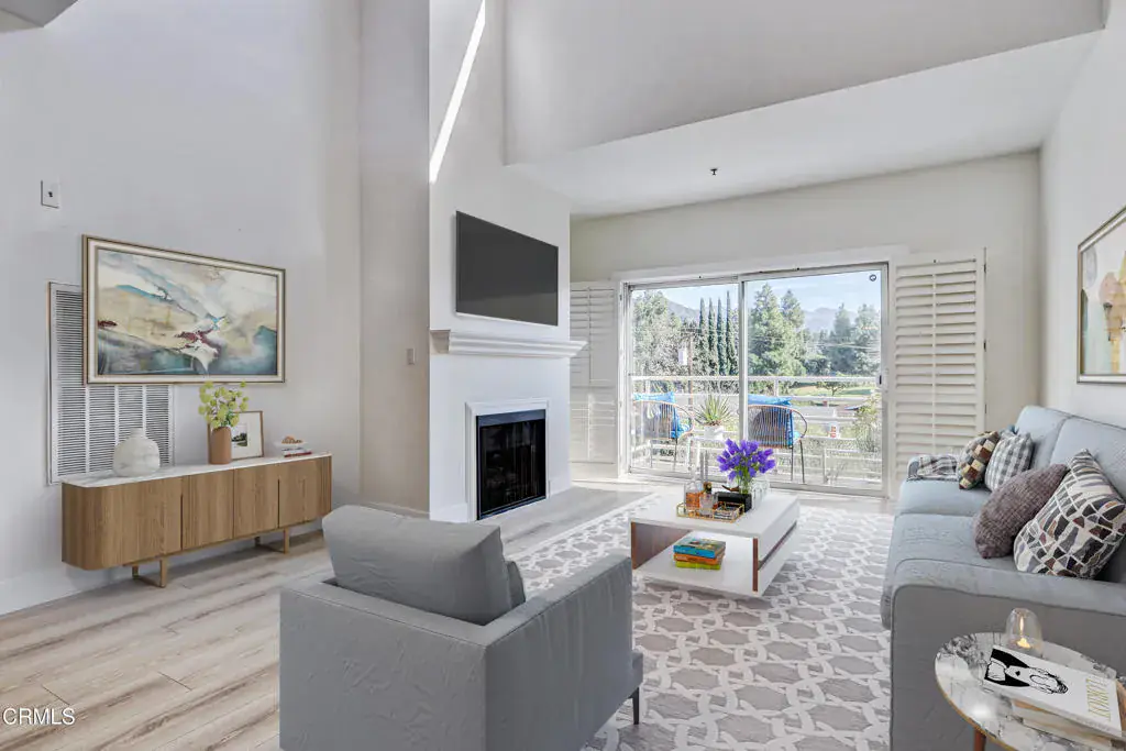 Elevated above it all, this exquisitely remodeled 3 bedroom, 3 bathroom, top-floor residence delivers true penthouse ambiance with the rare advantage of only one common wall. Designed for refined living, the home blends privacy, sophistication, and sweeping mountain vistas including a living room fireplace! Thoughtfully reimagined interiors showcase new flooring with premium acoustic underlayment, beautifully remodeled baths, and a custom-crafted kitchen featuring bespoke cabinetry with pull-out drawers and brand-new stainless steel appliances. Custom shutters, dual paned windows and sliding door and new window screens throughout add timeless elegance and comfort. Seamless indoor-outdoor living unfolds across two spectacular view decks — one extending from the living room and a second private retreat on the upper level. Enjoy panoramic sunsets over the Verdugo Mountains to the west and breathtaking vistas of the San Gabriel Mountains to the north. Private, serene and gated, the community offers resort-inspired amenities including a tranquil spa and an outdoor summer kitchen with BBQ area, ideal for entertaining under the California sky. Perfectly positioned just two blocks from a Blue Ribbon high school, Crescenta Valley High, and moments from the boutiques and dining of the charming Montrose Shopping Park, this is luxury living with exceptional convenience. A rare offering that combines elevated design, inspiring views, and an enviable location with covered parking for two cars. (Seller Upgrades attached in Documents.)