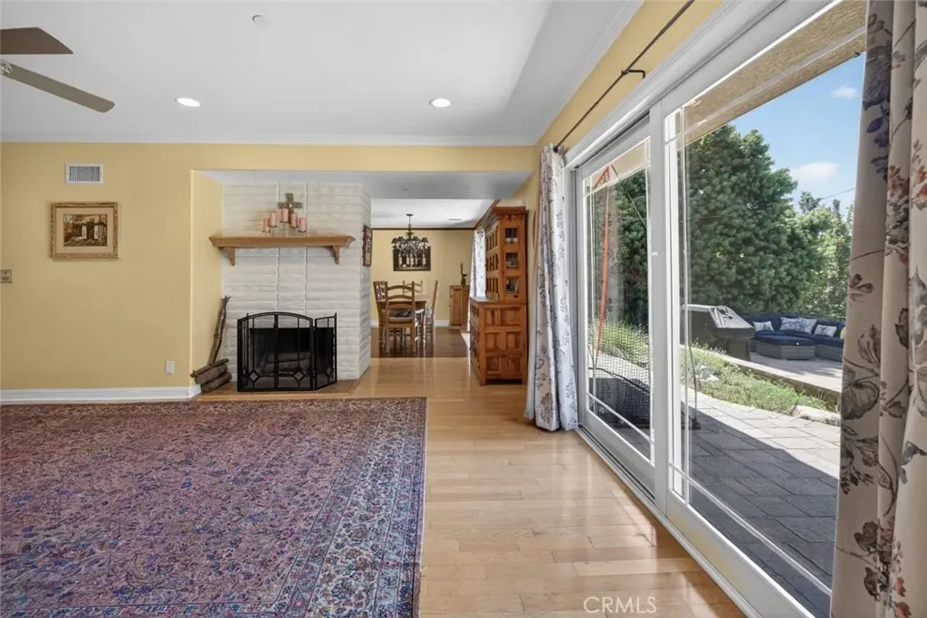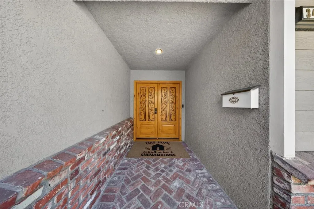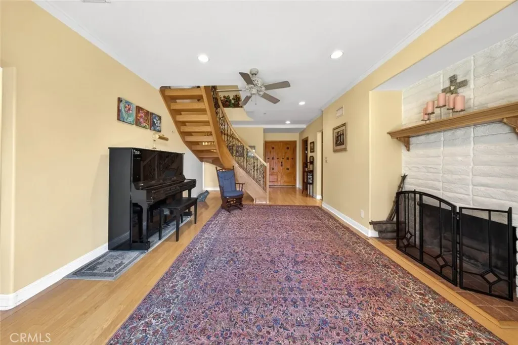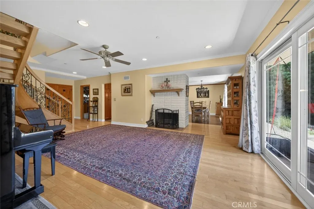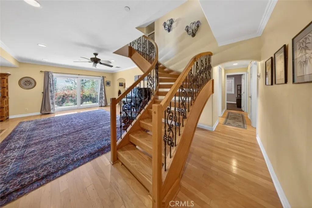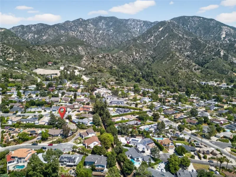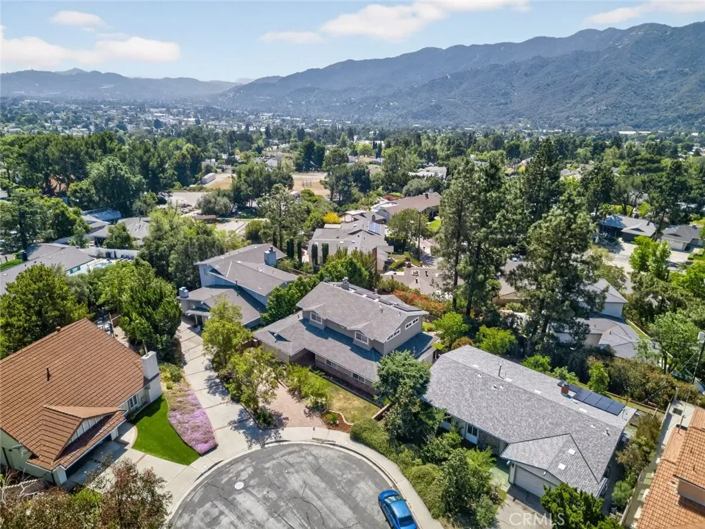 Welcome to this beautifully maintained two story home, set on a quiet cul de sac above Foothill in the heart of La Crescenta, one of the area’s most sought after neighborhoods. A charming stone paver driveway greets you, providing both curb appeal and ample parking, accented by rose bushes and fruit trees. With 3,073 square feet of living space, this impressive home features 5 bedrooms and 3 full bathrooms. The layout includes 2 bedrooms upstairs and 3 downstairs. Upon entry, you are welcomed by an open living area highlighted by abundant natural light, warm wood flooring, recessed lighting, and a stunning curved staircase that serves as a striking architectural focal point. The living room features a fireplace and sliding doors that open to the backyard, further enhancing the bright and airy atmosphere. The family room offers an inviting space with a large entertainment center ideal for media and storage. The well appointed kitchen boasts ample cabinetry, generous island with seating, and a layout ideal for cooking and entertaining. Adjacent to the kitchen, the dining area showcases sliding glass doors that elegantly integrate the indoor space with the backyard setting. The generously sized primary suite offers a serene escape, with a fireplace, a large walk in closet, and a balcony overlooking the backyard with scenic mountain views. The primary bathroom offers a double vanity, a bathtub, and sunlit windows. Enjoy the private backyard, which includes a patio for dining and entertaining, a lush grassy area, scenic hillside views, and a dedicated dog run. Additional highlights include a 2 car attached garage, paid off solar panels for energy efficiency, and fire sprinklers. This home offers an exceptional location in the foothills of La Crescenta, close to award winning schools. Welcome home!