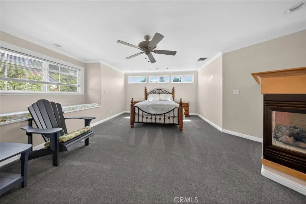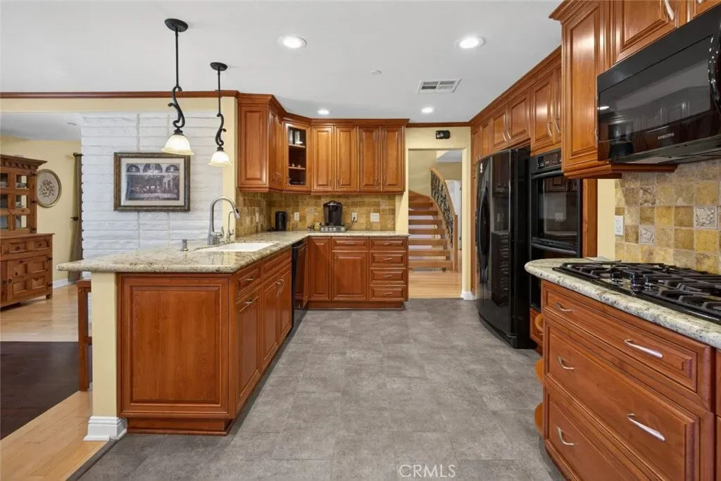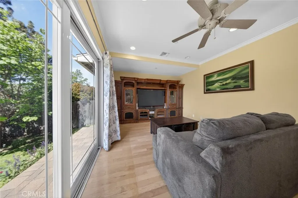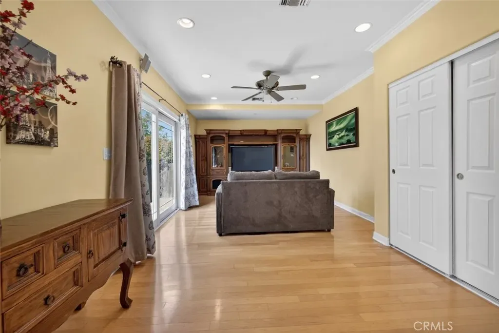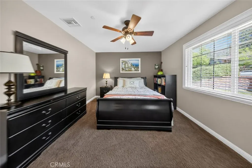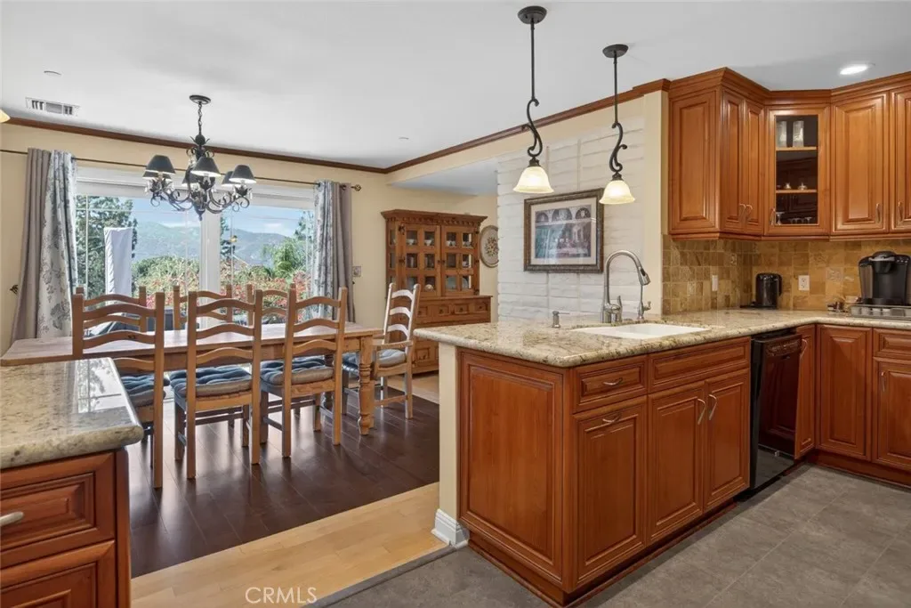 Welcome to this beautifully maintained two story home, set on a quiet cul de sac above Foothill in the heart of La Crescenta, one of the area’s most sought after neighborhoods. A charming stone paver driveway greets you, providing both curb appeal and ample parking, accented by rose bushes and fruit trees. With 3,073 square feet of living space, this impressive home features 5 bedrooms and 3 full bathrooms. The layout includes 2 bedrooms upstairs and 3 downstairs. Upon entry, you are welcomed by an open living area highlighted by abundant natural light, warm wood flooring, recessed lighting, and a stunning curved staircase that serves as a striking architectural focal point. The living room features a fireplace and sliding doors that open to the backyard, further enhancing the bright and airy atmosphere. The family room offers an inviting space with a large entertainment center ideal for media and storage. The well appointed kitchen boasts ample cabinetry, generous island with seating, and a layout ideal for cooking and entertaining. Adjacent to the kitchen, the dining area showcases sliding glass doors that elegantly integrate the indoor space with the backyard setting. The generously sized primary suite offers a serene escape, with a fireplace, a large walk in closet, and a balcony overlooking the backyard with scenic mountain views. The primary bathroom offers a double vanity, a bathtub, and sunlit windows. Enjoy the private backyard, which includes a patio for dining and entertaining, a lush grassy area, scenic hillside views, and a dedicated dog run. Additional highlights include a 2 car attached garage, paid off solar panels for energy efficiency, and fire sprinklers. This home offers an exceptional location in the foothills of La Crescenta, close to award winning schools. Welcome home!