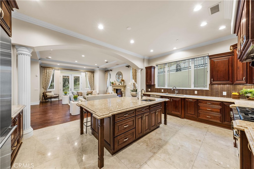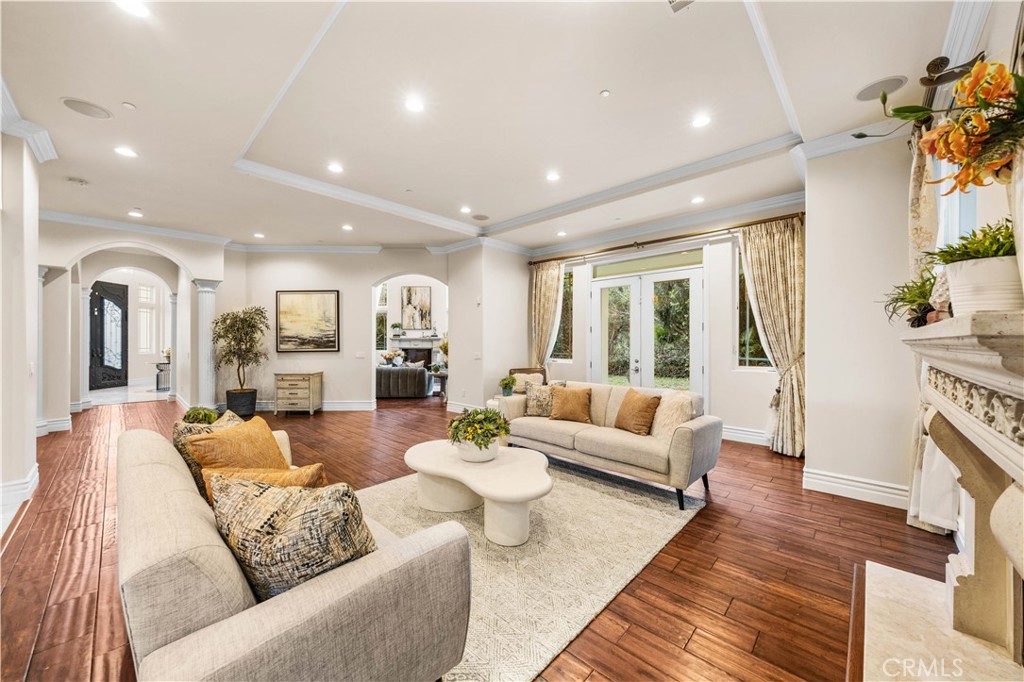 Perched behind a private gate at the end of a long-paved driveway, this custom Mediterranean estate offers exceptional privacy and scale on approximately 3.83 acres across three contiguous parcels in prestigious La Habra Heights. Built in 2014, the 4,933-square-foot residence features a dramatic grand foyer with marble floors, inlaid medallion, stylish staircase, and soaring 20-foot ceilings. Expansive windows fill the home with natural light, highlighting elegant formal living and dining spaces, a flexible office or study, and an open great room that flows seamlessly into the chef’s kitchen. Thoughtfully designed for comfortable living and effortless entertaining, the kitchen offers custom cabinetry, an oversized island, walk-in pantry, professional-grade stainless appliances, and French doors leading to the patio. The primary suite provides a private retreat with balcony, fireplace, spa-inspired bath, and an expansive walk-in closet. Three additional bedroom suites each feature private baths. A separate lower-level guest quarters with exterior access is ideal for extended stays or multigenerational living. The inclusion of two adjacent parcels creates a rare opportunity for a private compound, future development, or long-term land investment. Enjoy sweeping canyon and city-light views, a three-car garage, and the tranquility of La Habra Heights — all within convenient reach of both Orange and Los Angeles Counties. A rare offering of privacy, land, and potential.