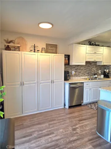 Inside, you’ll find a remodeled kitchen with white cabinetry and updated countertops, laminate flooring throughout, fresh interior paint, dual-pane windows, an updated bathroom, and walk-in closets. The layout feels bright, clean, and functional, making this a great option for a buyer looking for a well-kept home with extra usable space.
