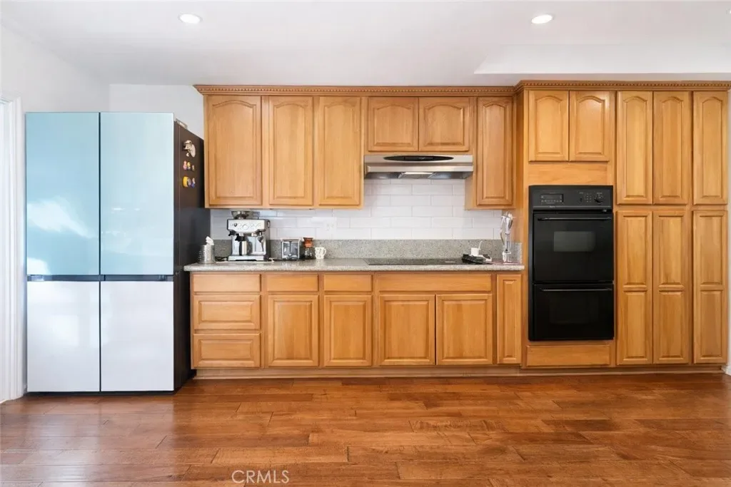 The home features solid wood flooring throughout, providing a warm, elegant feel and easy maintenance.